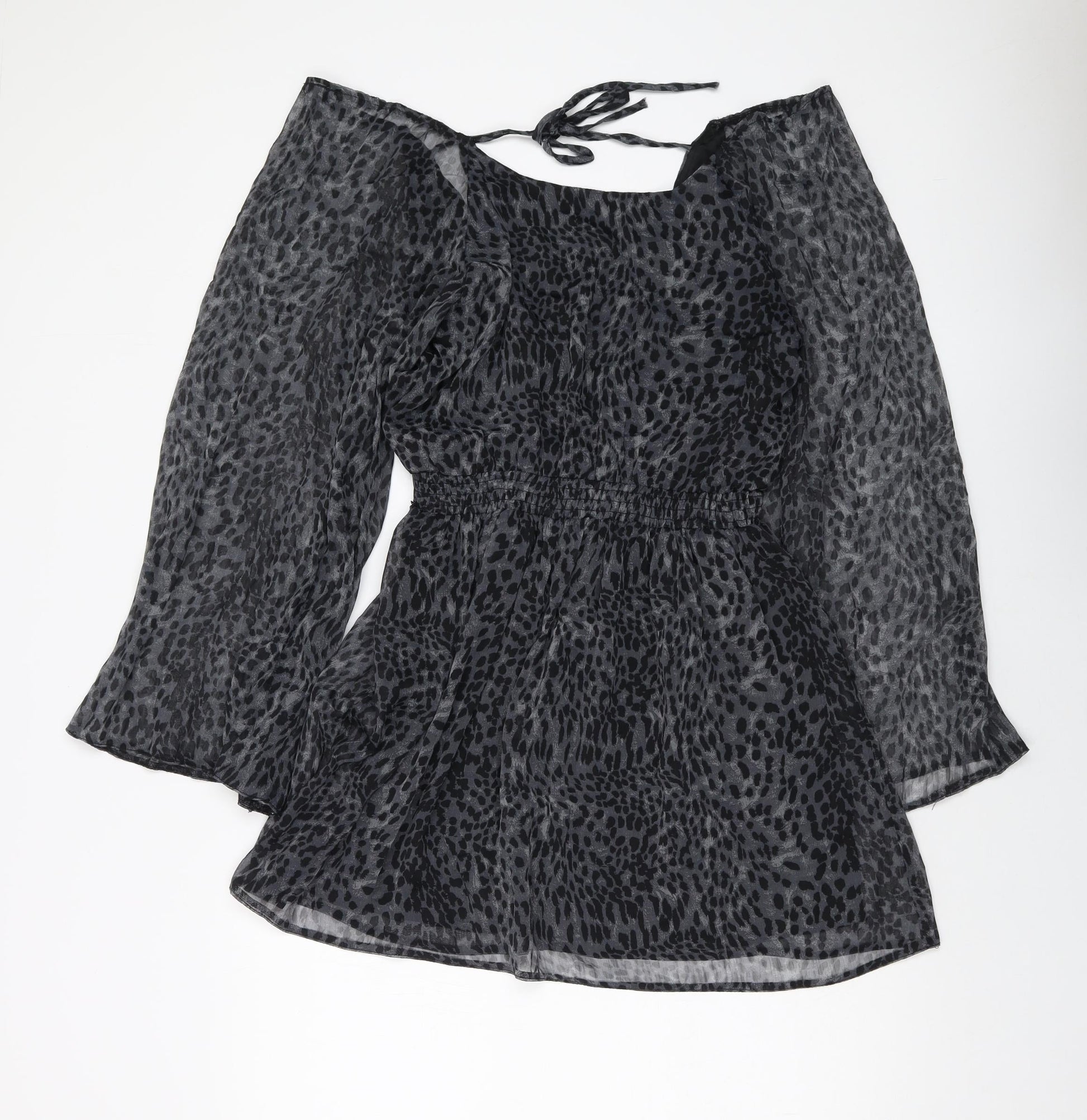 AX Paris Womens Grey Animal Print Polyester A-Line Size 10 V-Neck Tie