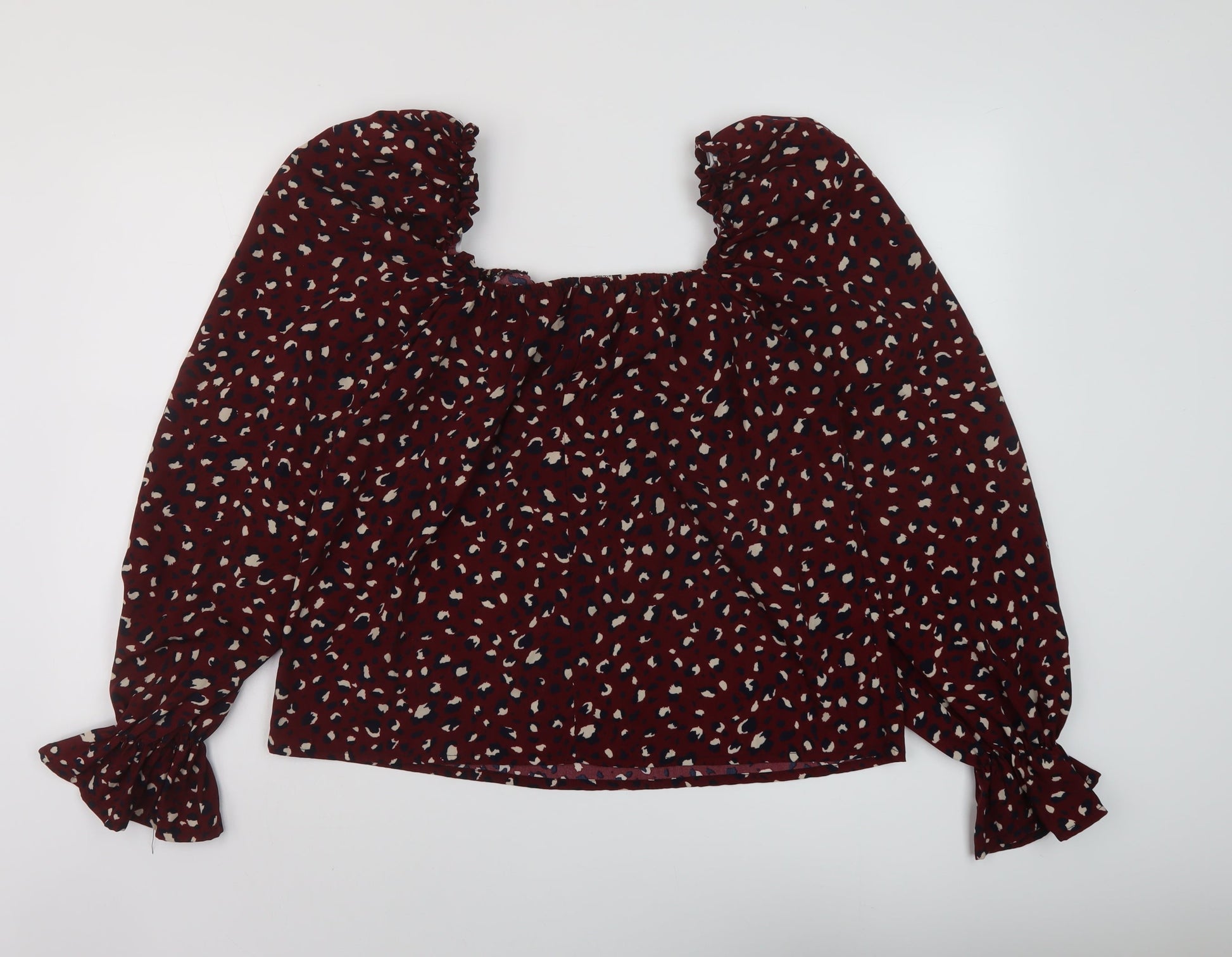 AX Paris Womens Red Animal Print Polyester Basic Blouse Size 12 Square Neck