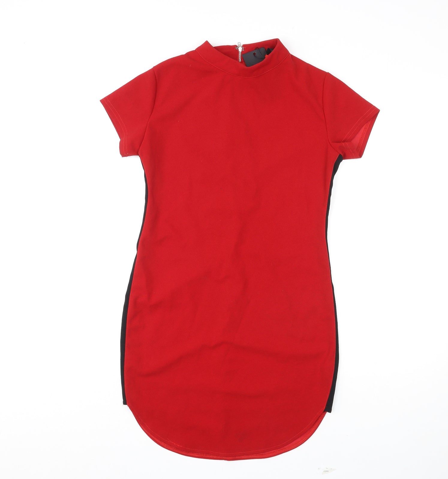 AX Paris Womens Red Colourblock Polyester A-Line Size 12 Mock Neck Pullover