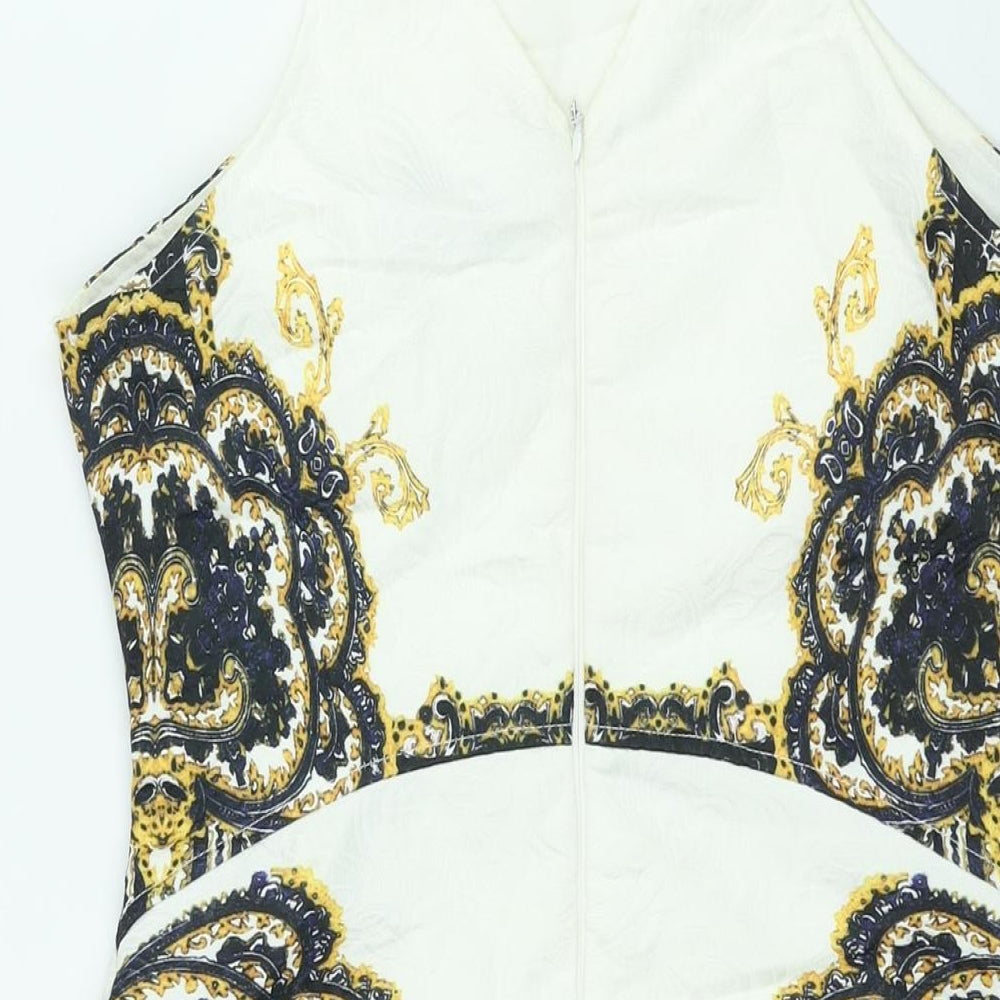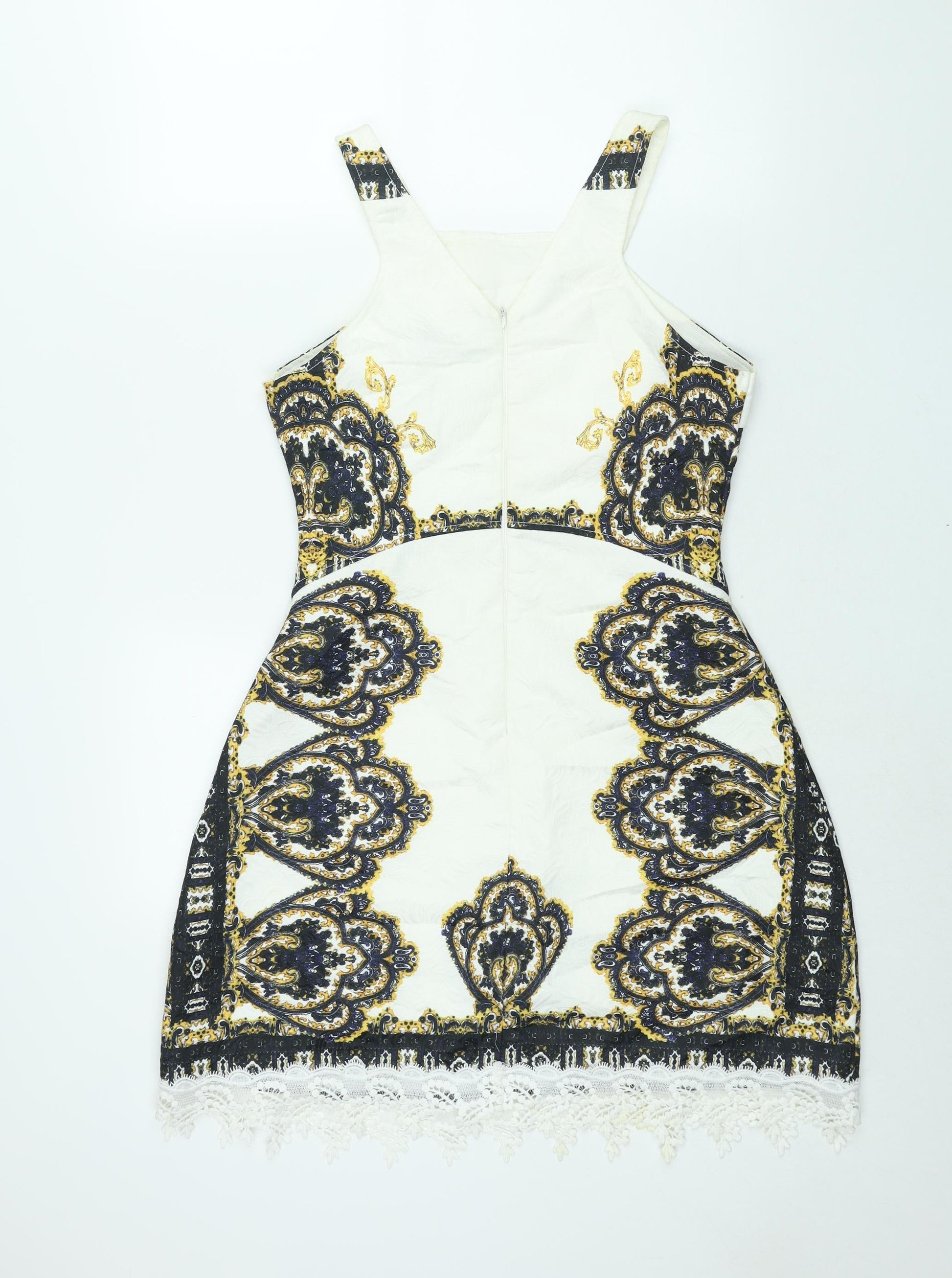 AX Paris Womens White Geometric Polyester A-Line Size 10 Square Neck Zip - Lace Trim