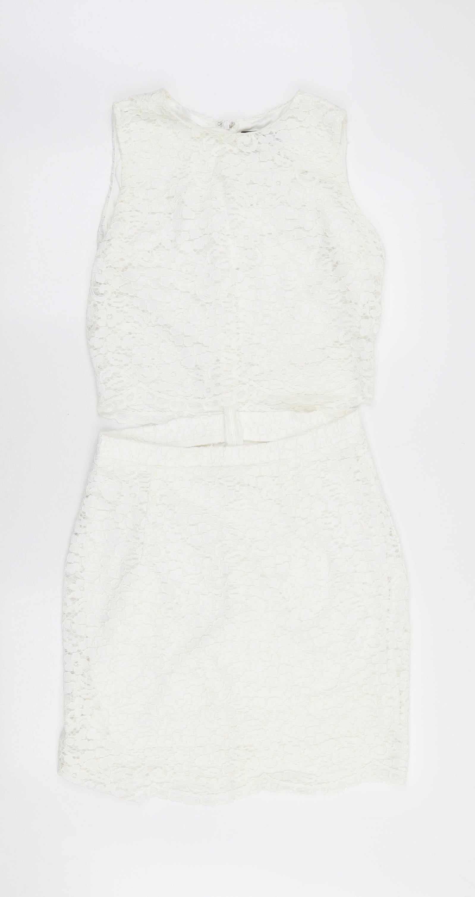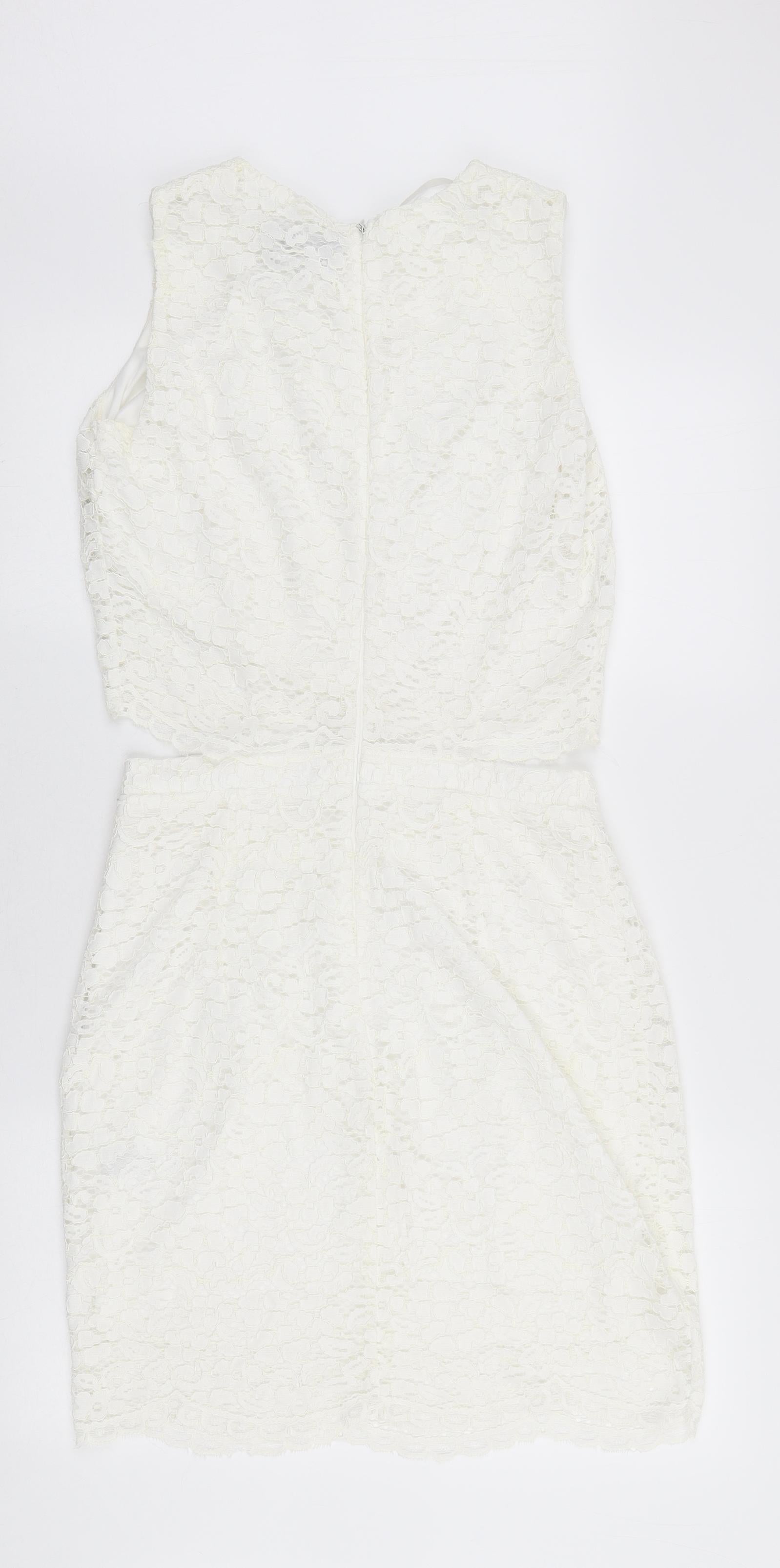 AX Paris Womens White Polyester Pencil Dress Size 14 Round Neck Zip