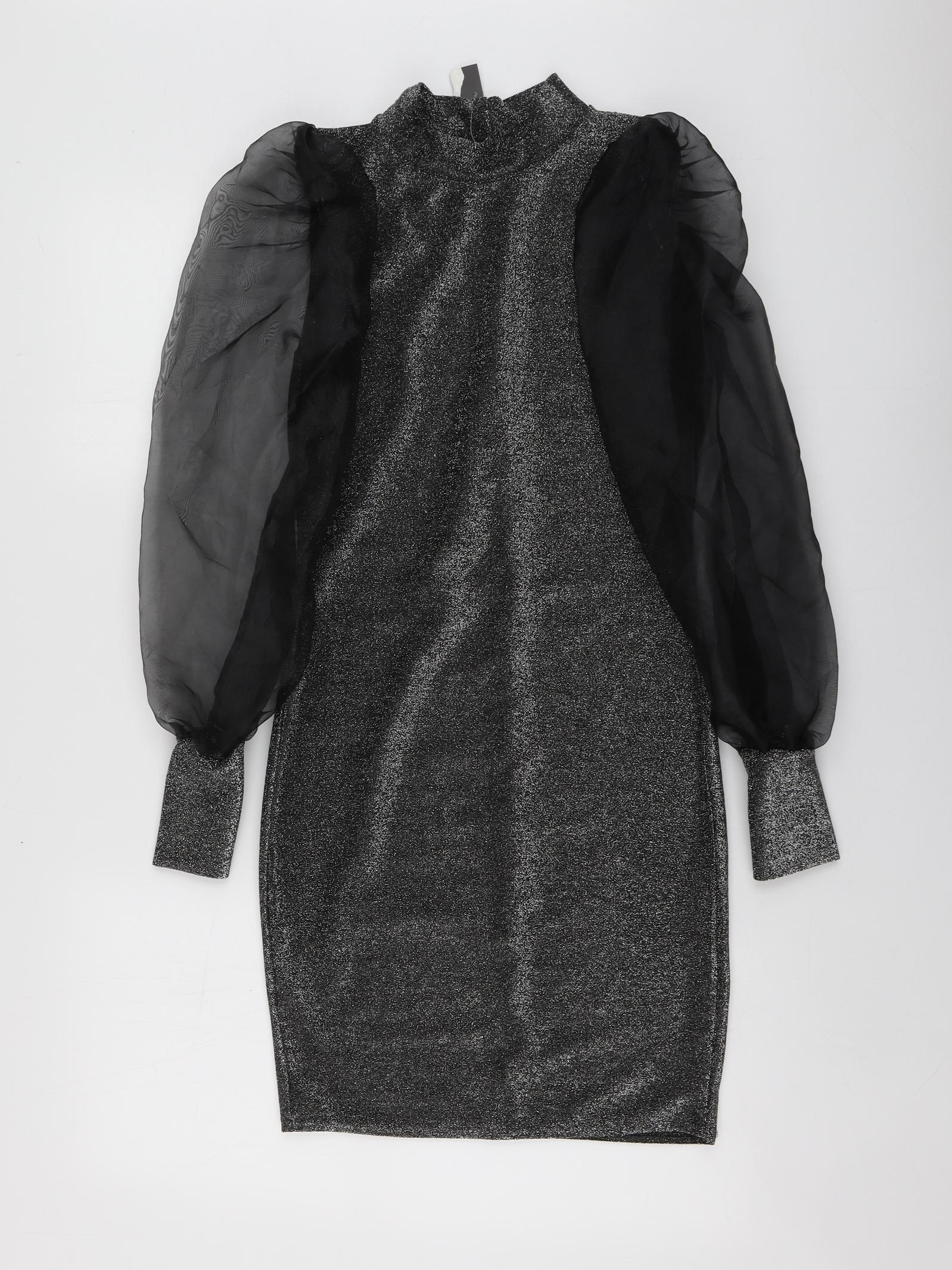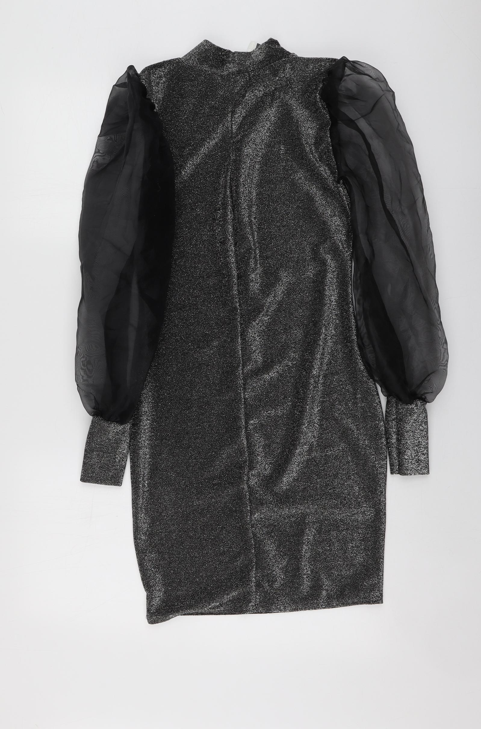 Ayanapa Womens Silver Polyester A-Line Size S High Neck