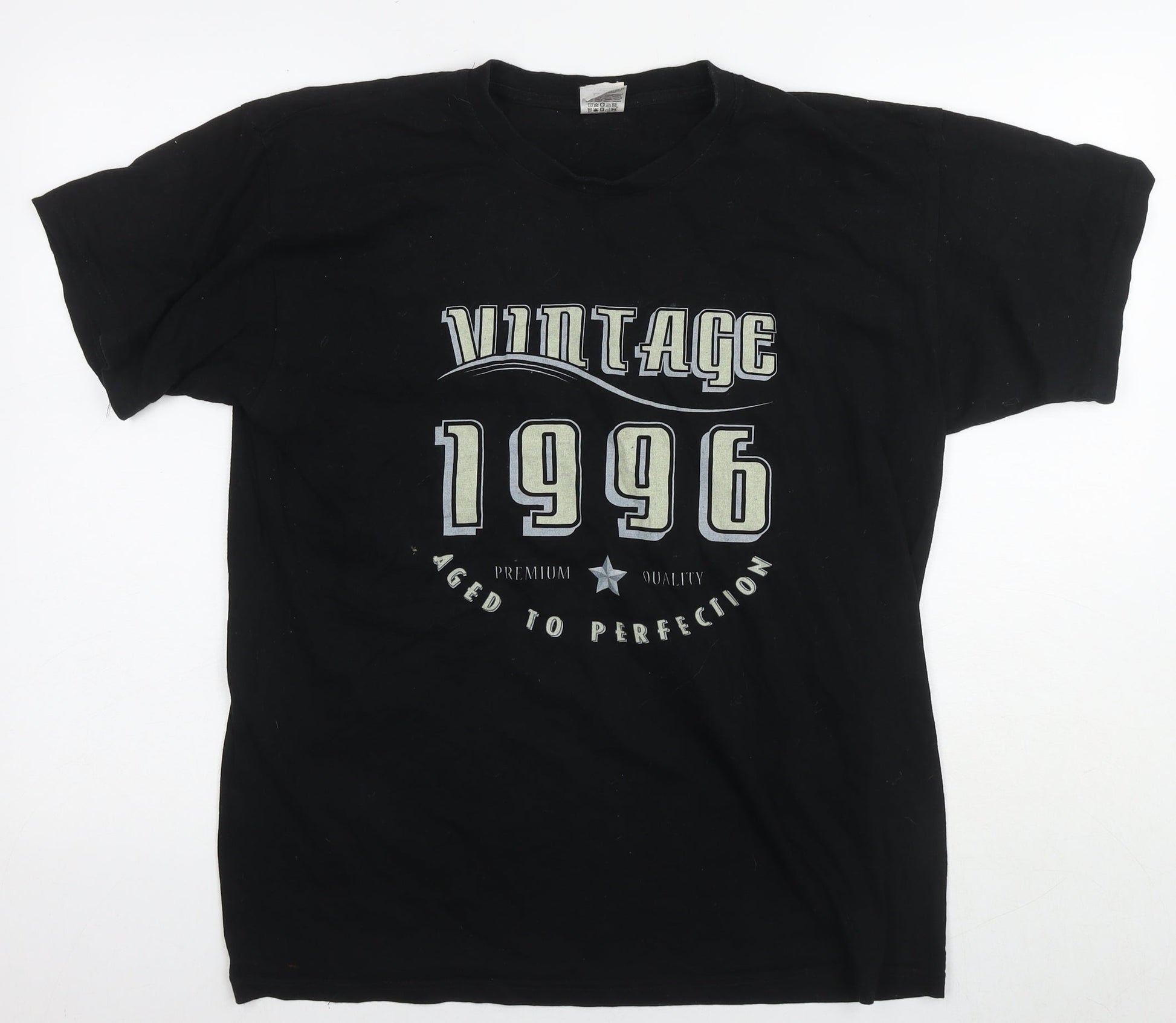 B&C Mens Black Cotton T-Shirt Size L Round Neck - Vintage 1996 Aged to perfection