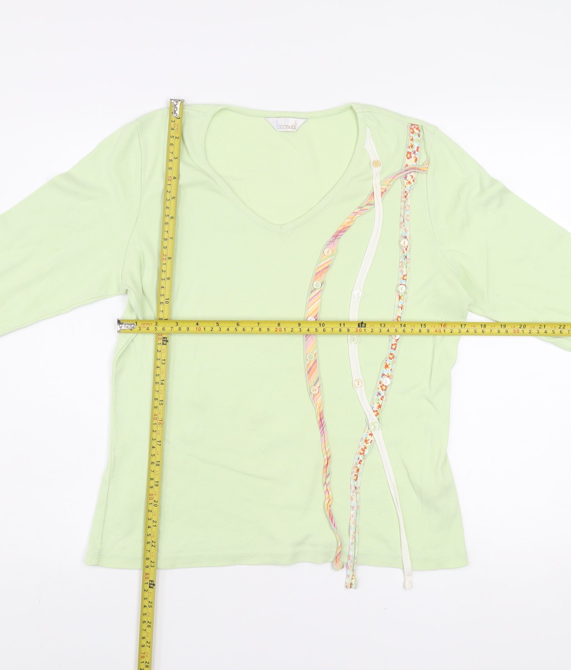 b casual Womens Green 3/4 Sleeve V-Neck Cotton T-Shirt Size 14