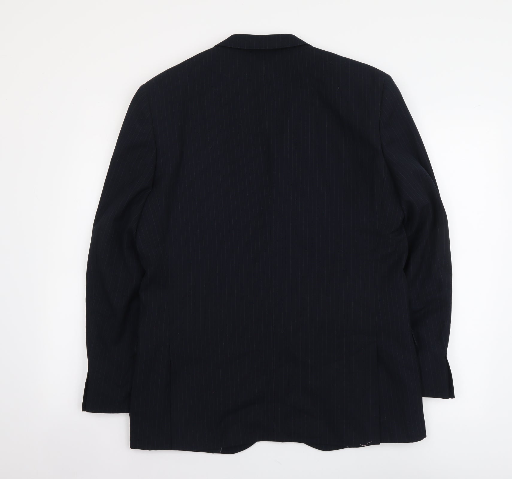 B&W Mens Blue Striped Polyethylene Jacket Suit Jacket Size M