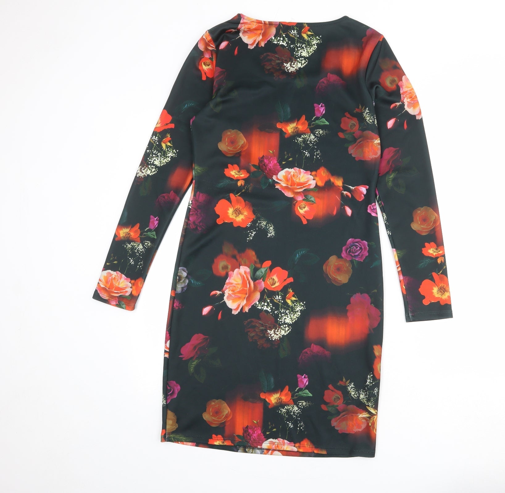 B.You Womens Black Floral Polyester Sheath Size 12 Boat Neck Pullover