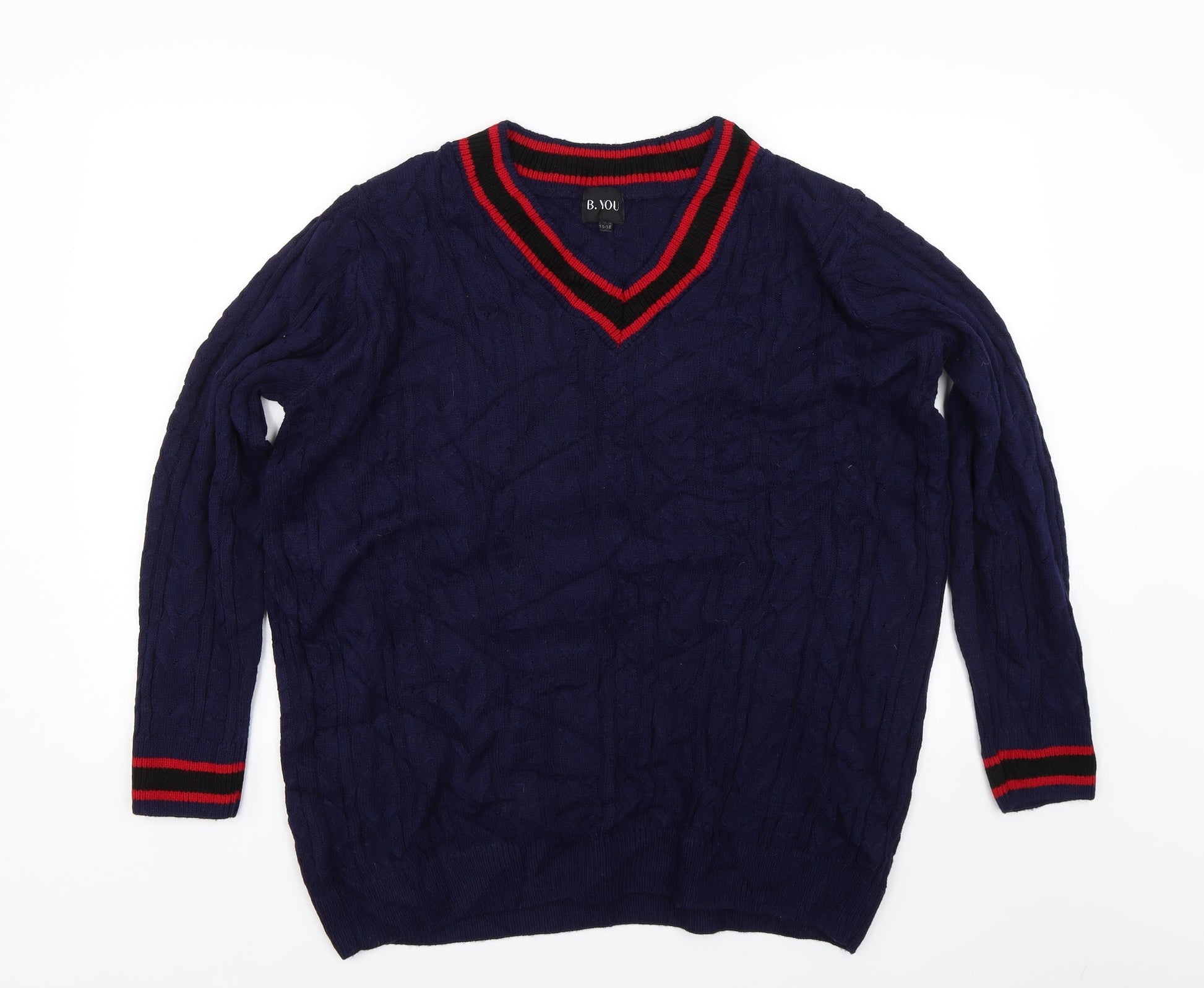 B. You Womens Blue Knit Pullover Jumper Size 16