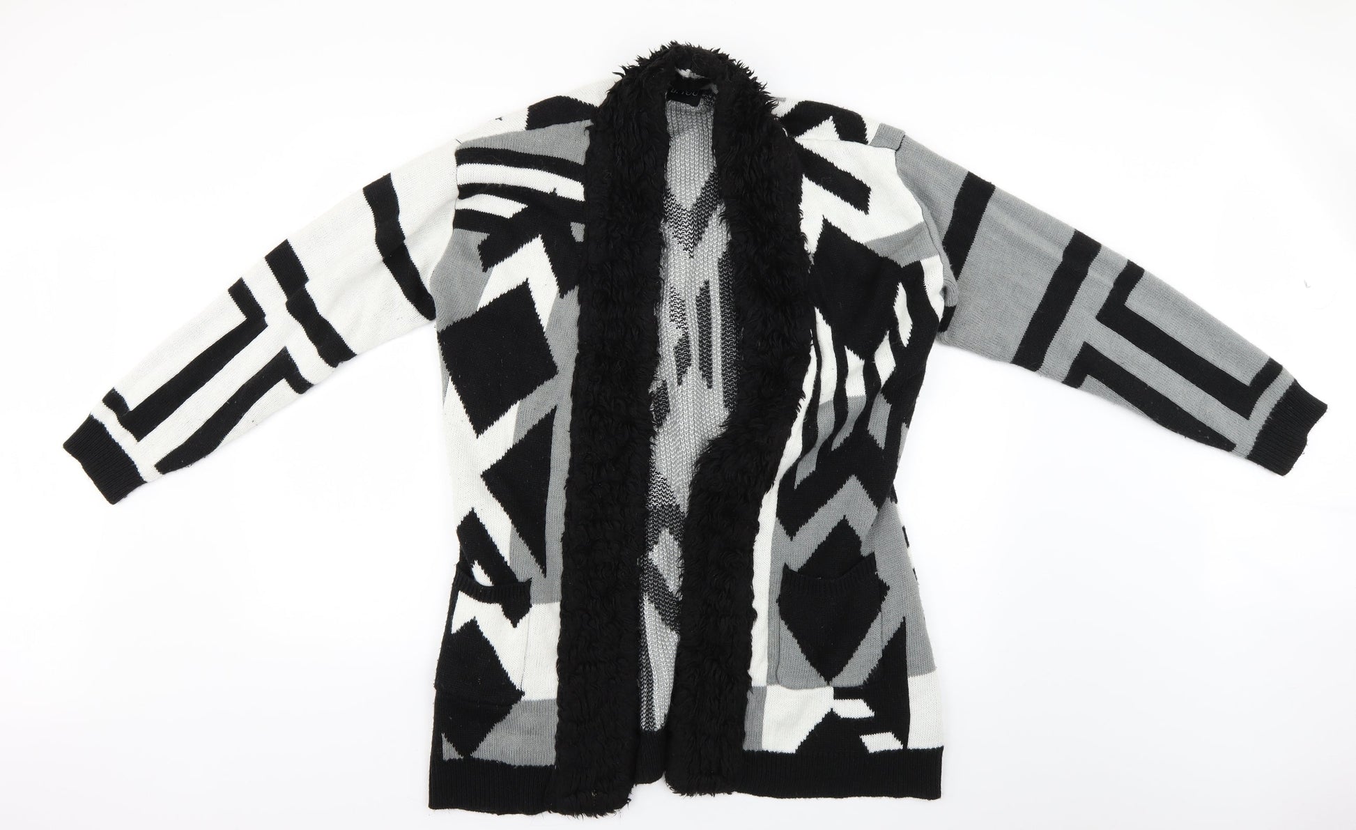 b.you Womens Multicoloured Geometric Overcoat Coat Size 14