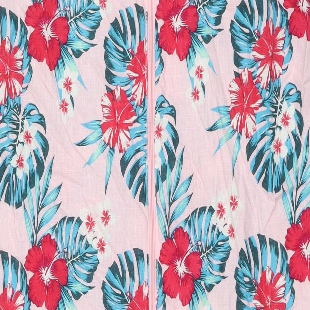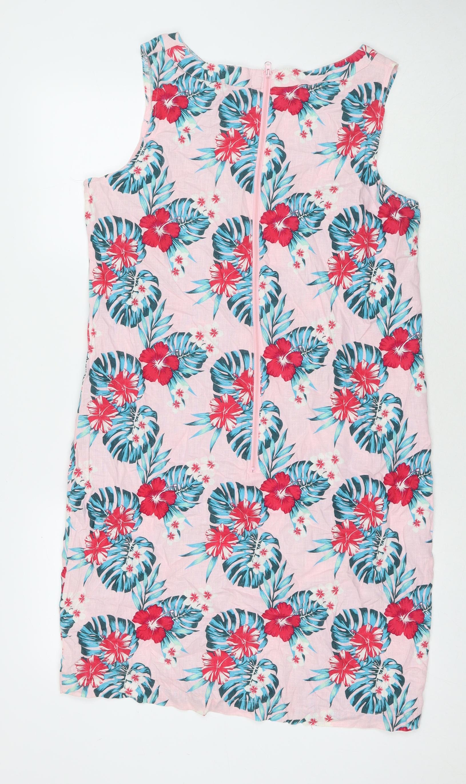 B.You Womens Pink Floral Linen Tank Dress Size 16 Round Neck Zip