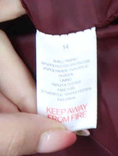 B.YOU Womens Red Wool Blend Hooded Duffle Coat Size 14