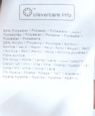 - Material Breakdown: 64% Polyester 28% Acrylic 5% Wool 3% Alpaca