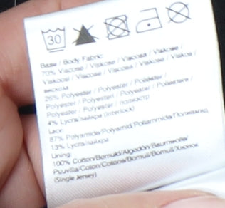- Material Breakdown: 70% Viscose 26% Polyester 4% Elastane