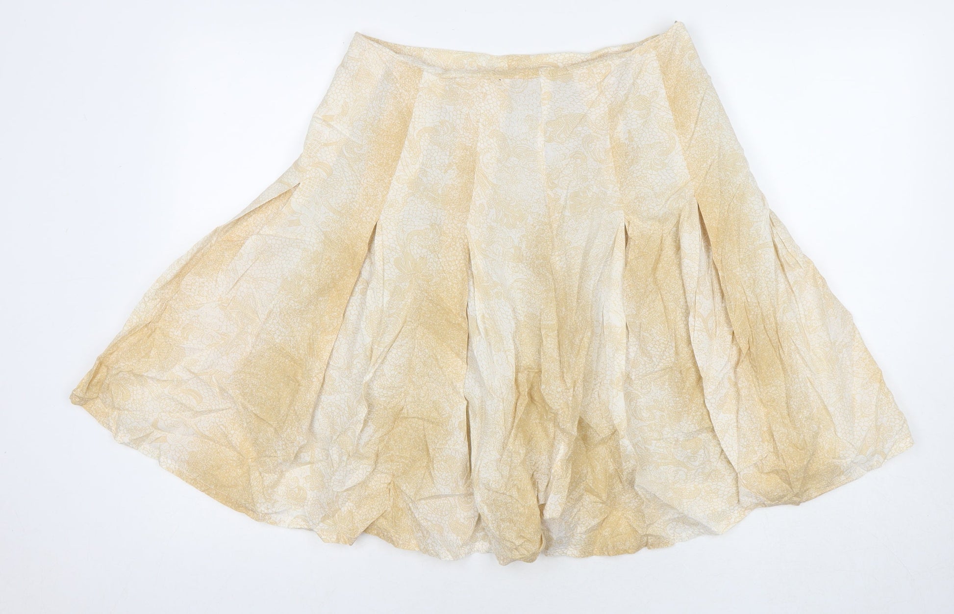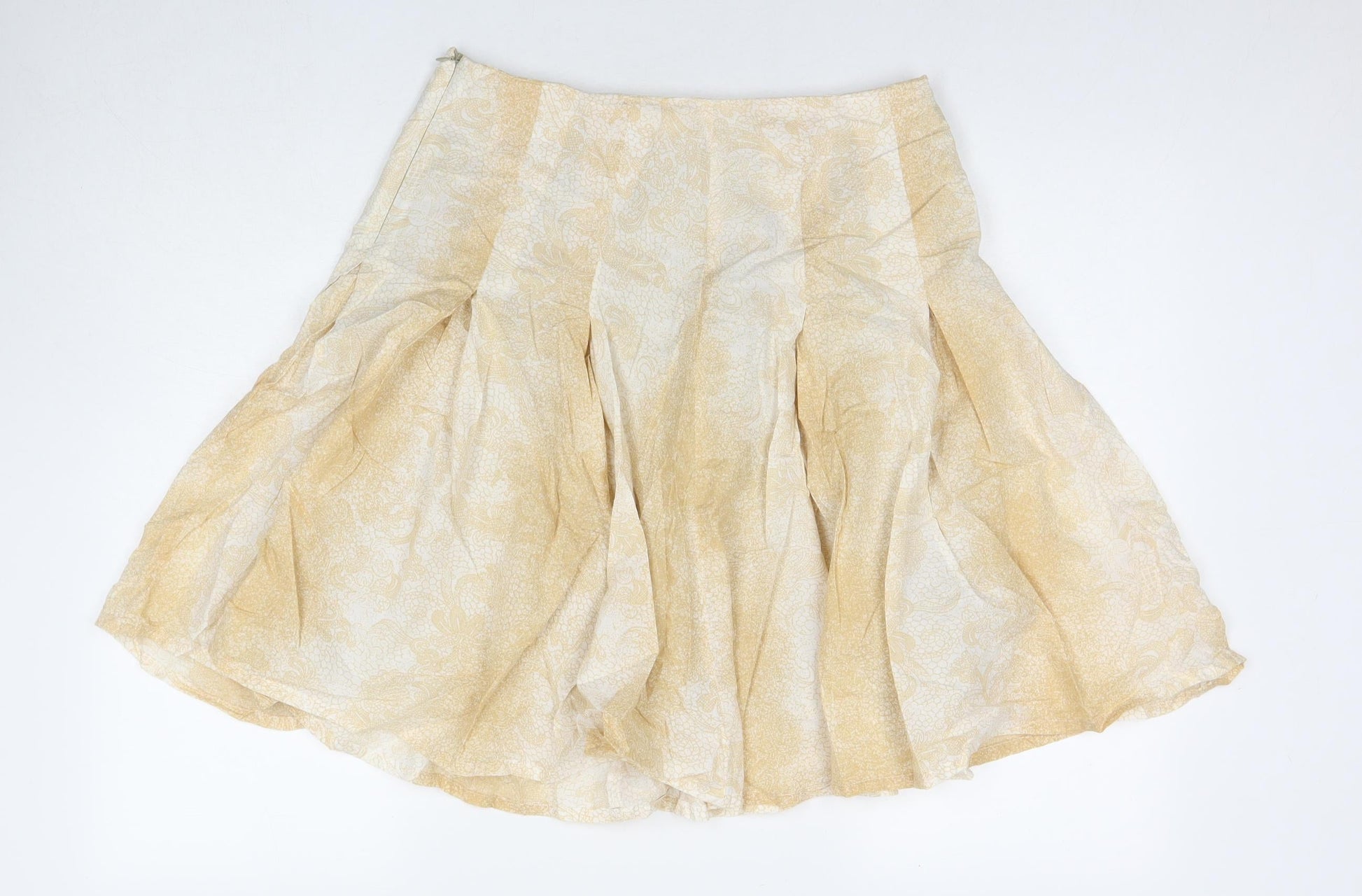 b.young Womens Beige Geometric Cotton A-Line Skirt Size 14 Zip