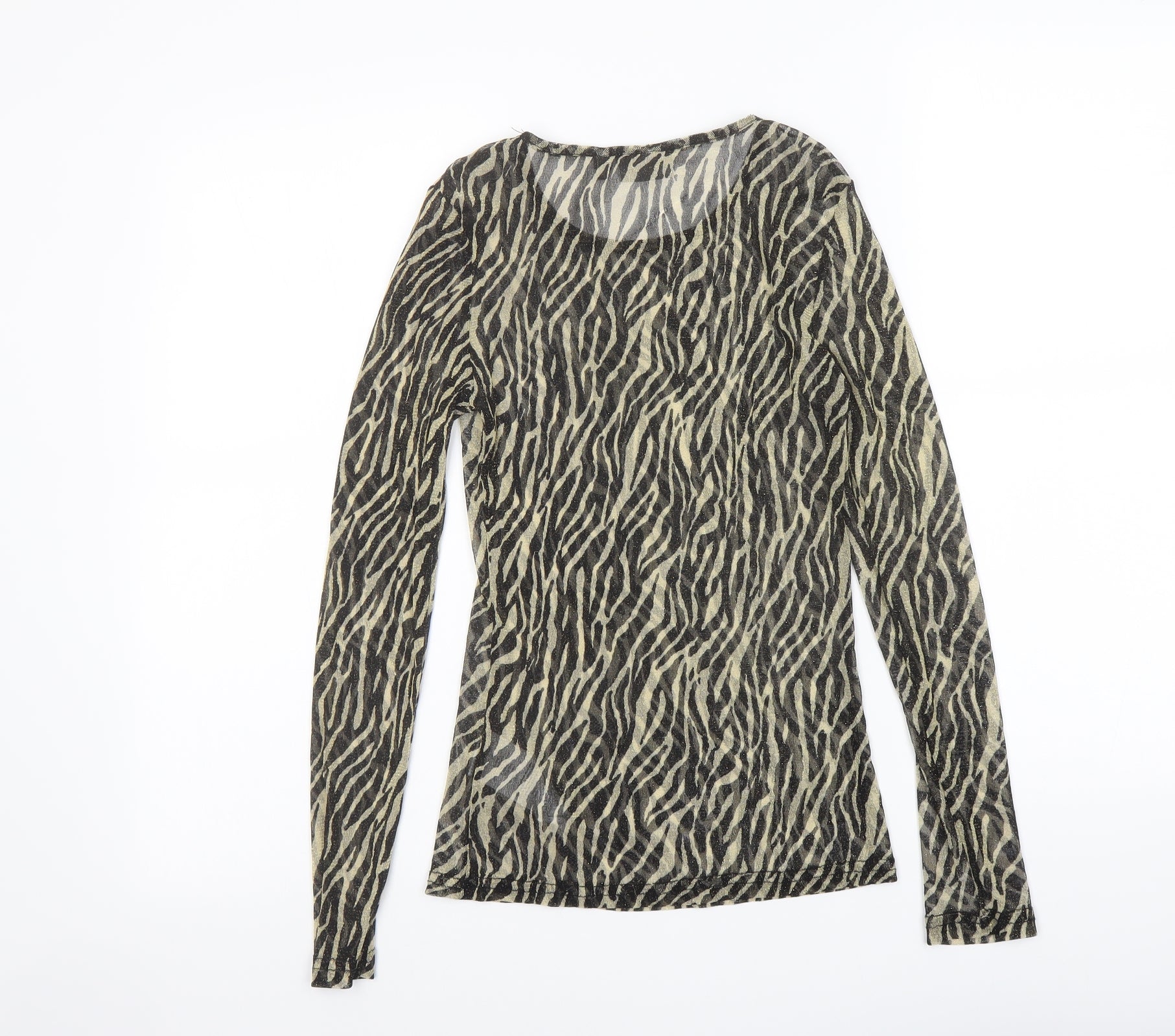 b.young Womens Black Animal Print Polyester Basic T-Shirt Size 12 Boat Neck