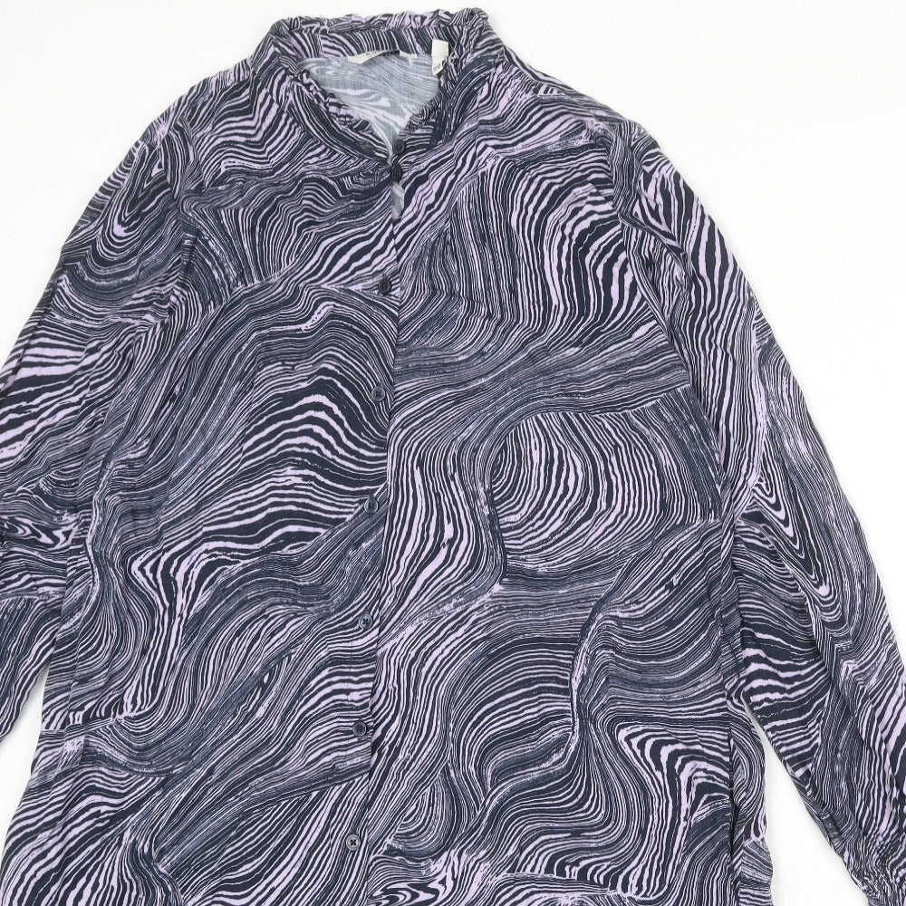 b.young Womens Blue Geometric Viscose Shirt Dress Size 12 Round Neck Button