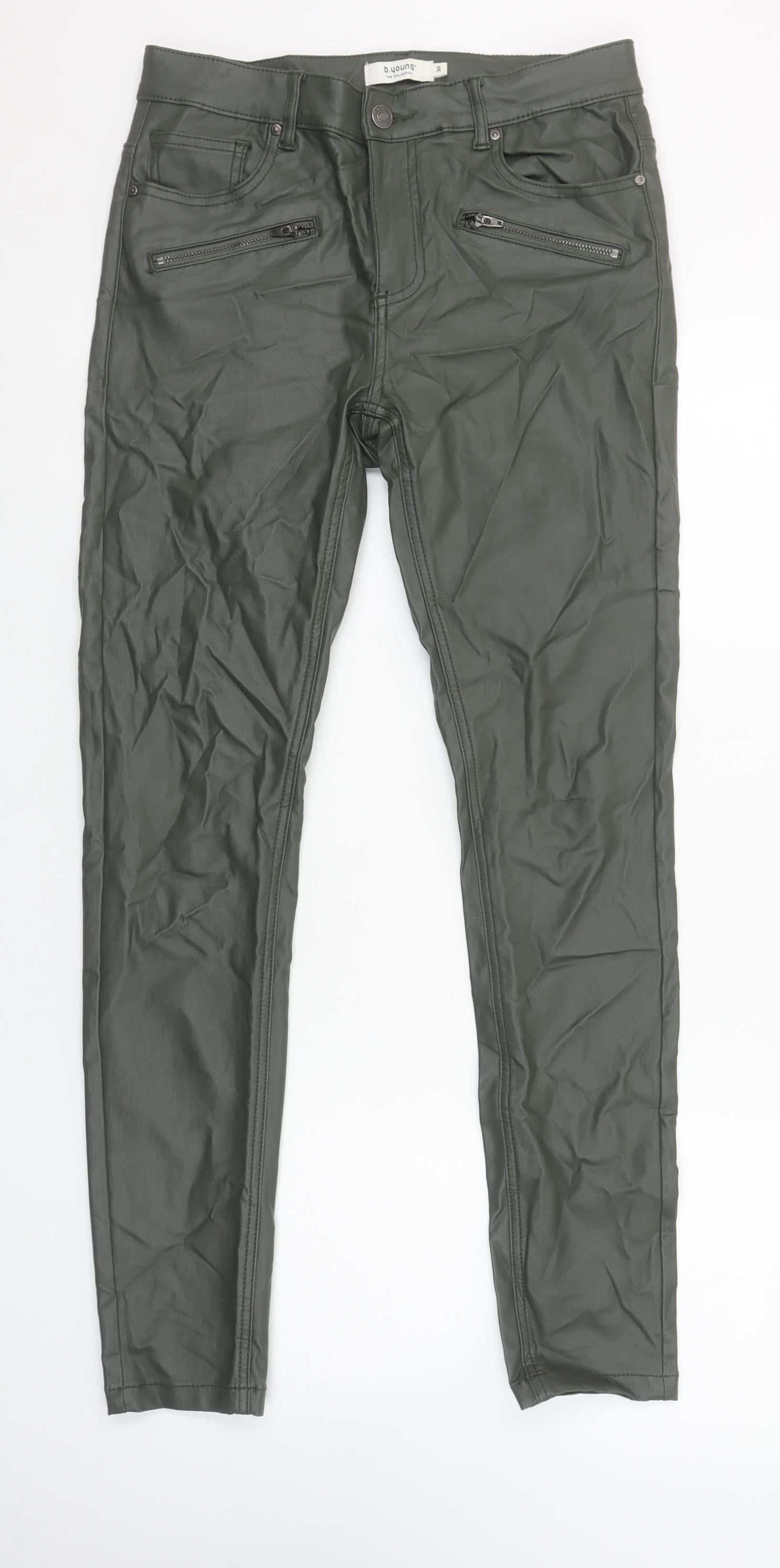 b.young Women's Green Faux Leather Skinny Jegging Trousers Size 30