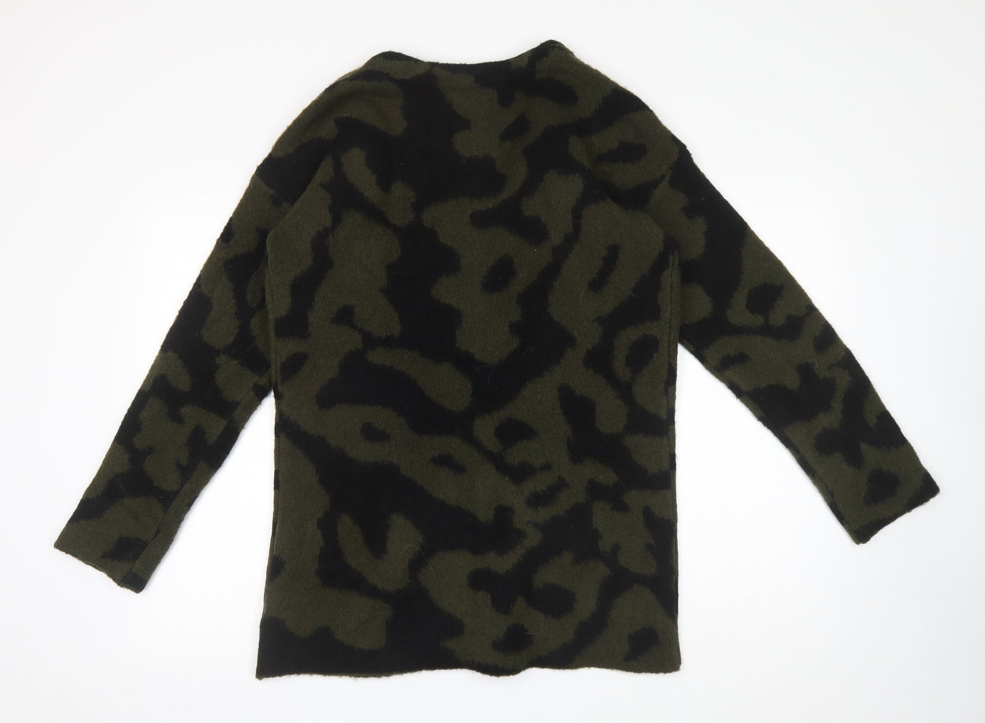 b.young Womens Green V-Neck Geometric Acrylic Cardigan Jumper Size L