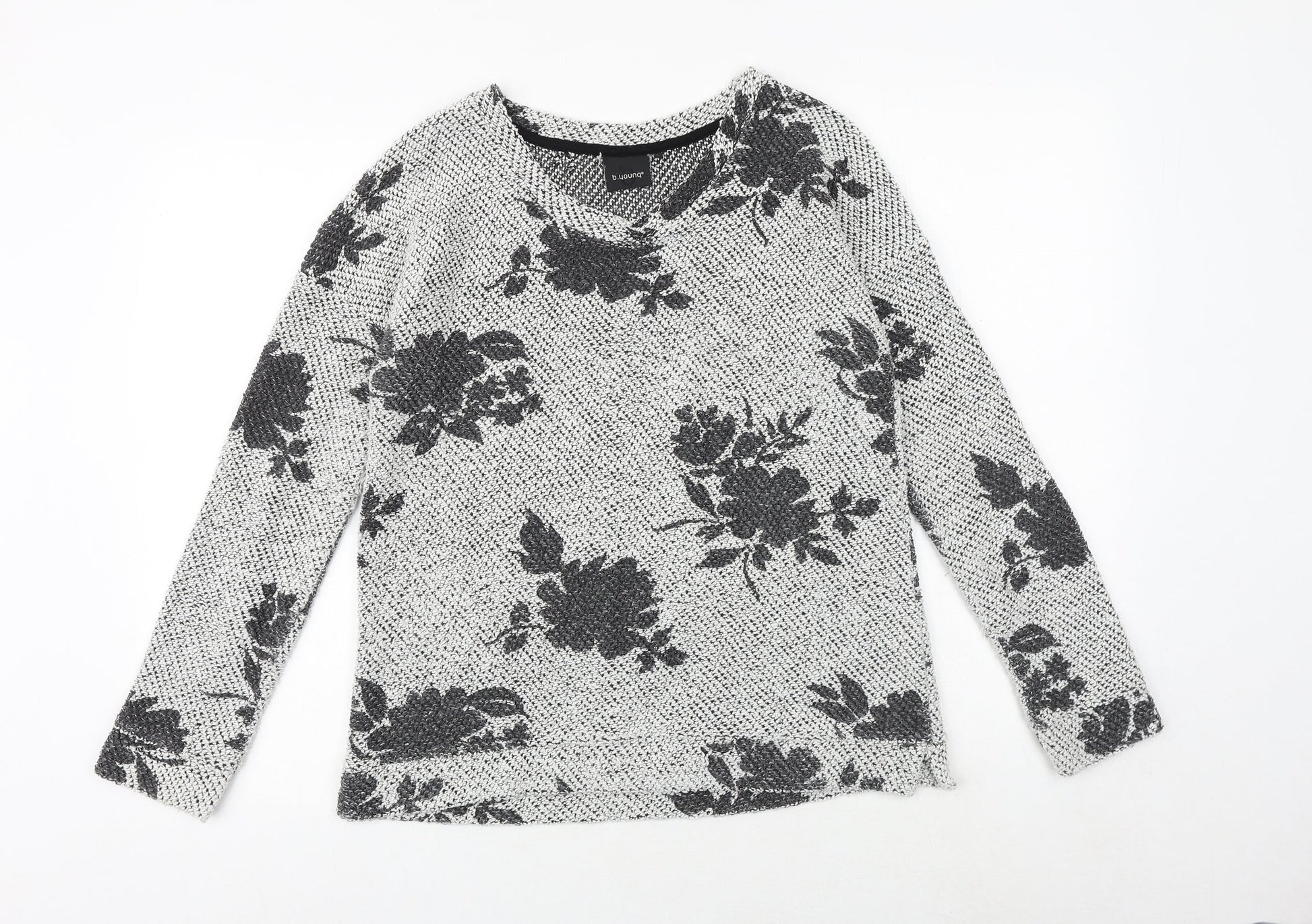 b.young Womens Grey Boat Neck Floral Cotton Pullover Jumper Size L