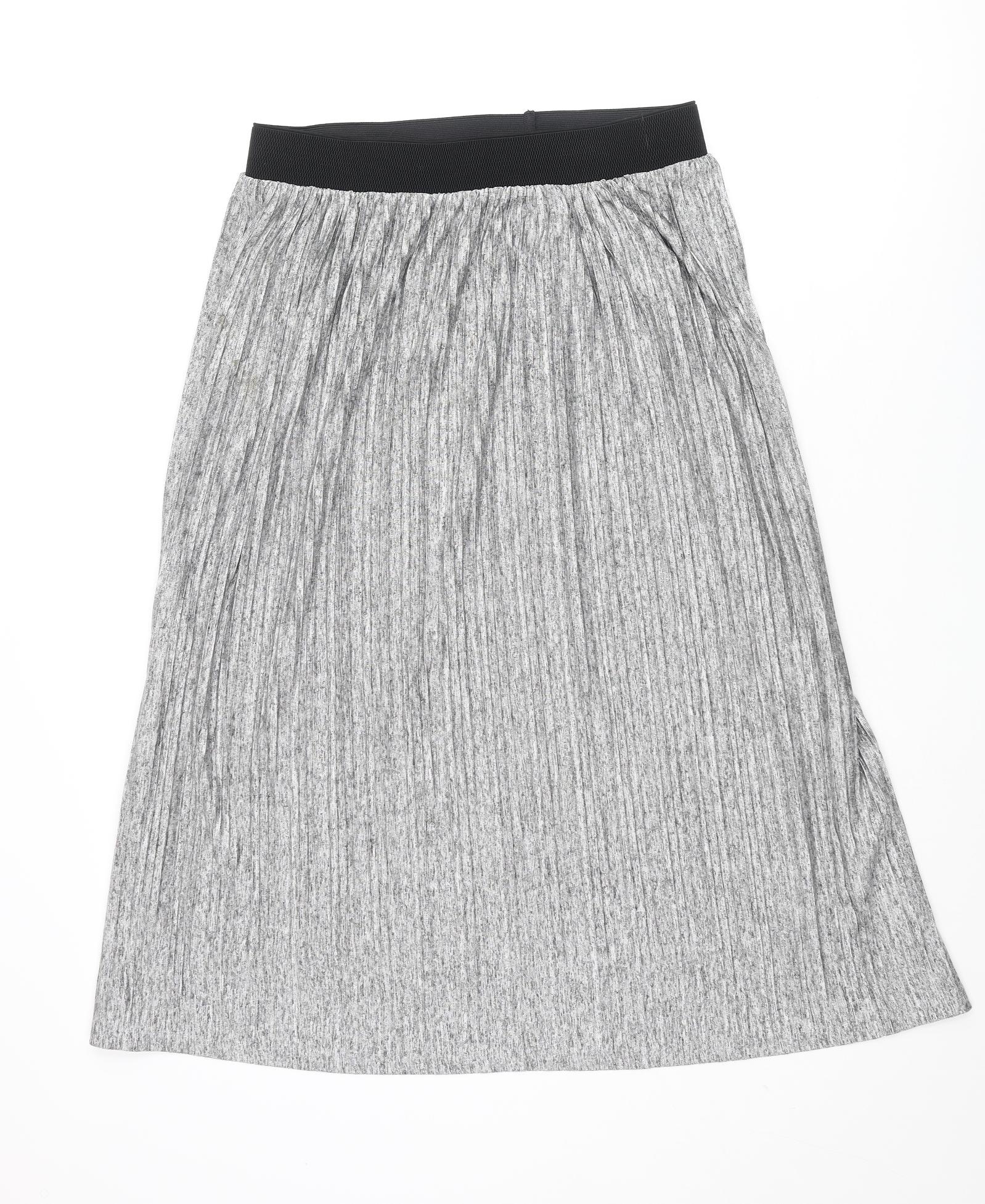 b.young Womens Grey Polyester A-Line Skirt Size L - Pleated Elasticated Waist