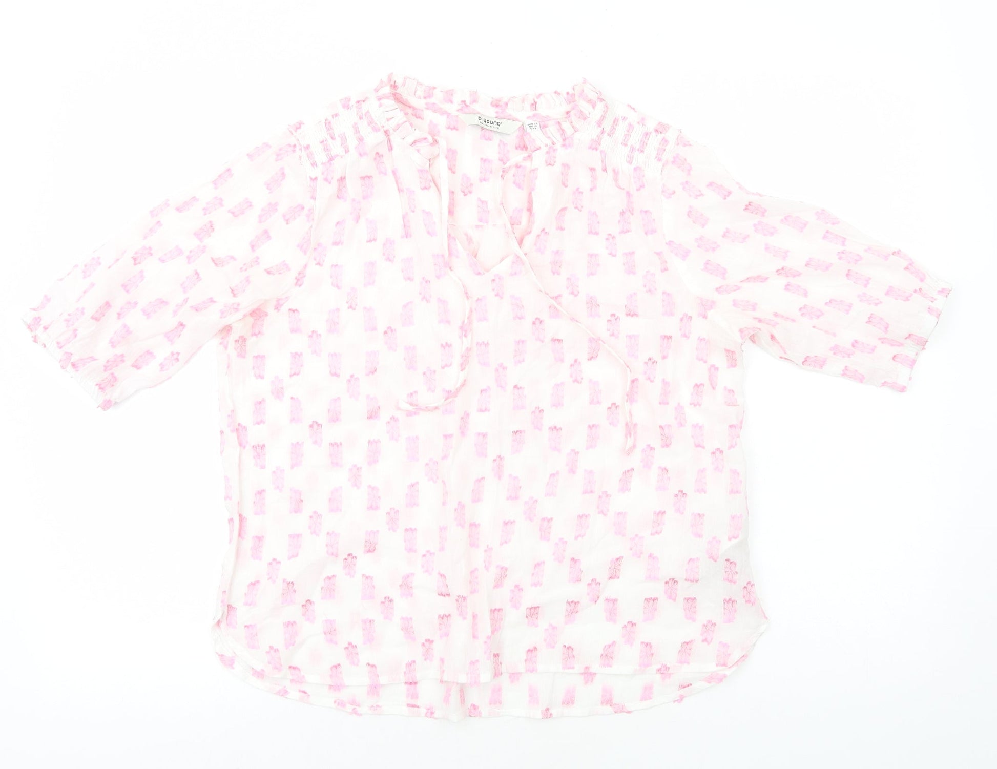 b.young Womens Pink Geometric Cotton Basic Blouse Size 10 V-Neck
