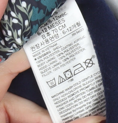 Baby GAP Girls Blue Floral Puffer Jacket Hooded 6-12 Months Winter Coat