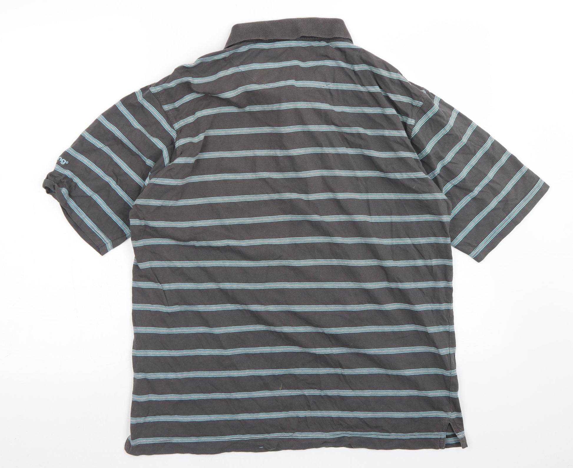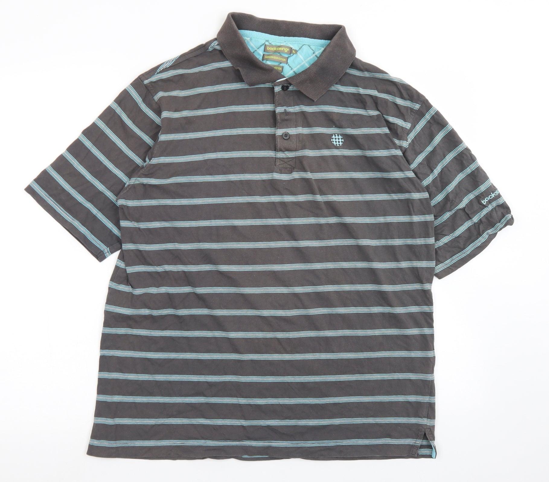 Backswing Mens Grey Striped Cotton Polo Size L Collared Button - Mergerized Cotton