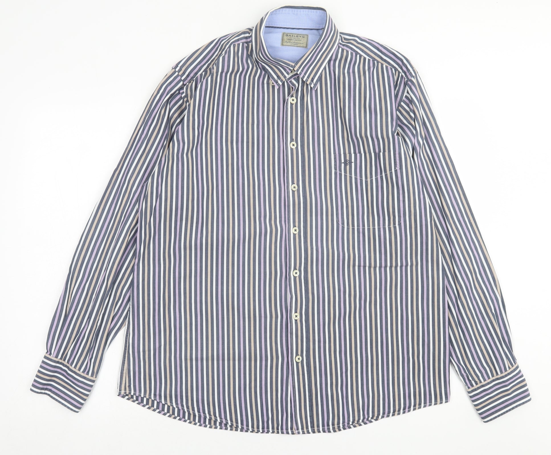 Baileys Mens Multicoloured Striped Cotton Button-Up Size L Collared Button