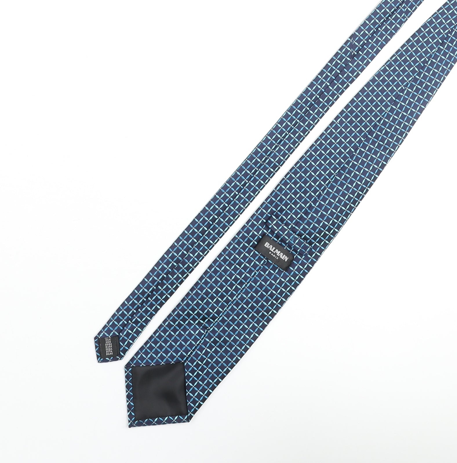 Balmain Mens Blue Plaids & Checks Silk Pointed Tie One Size