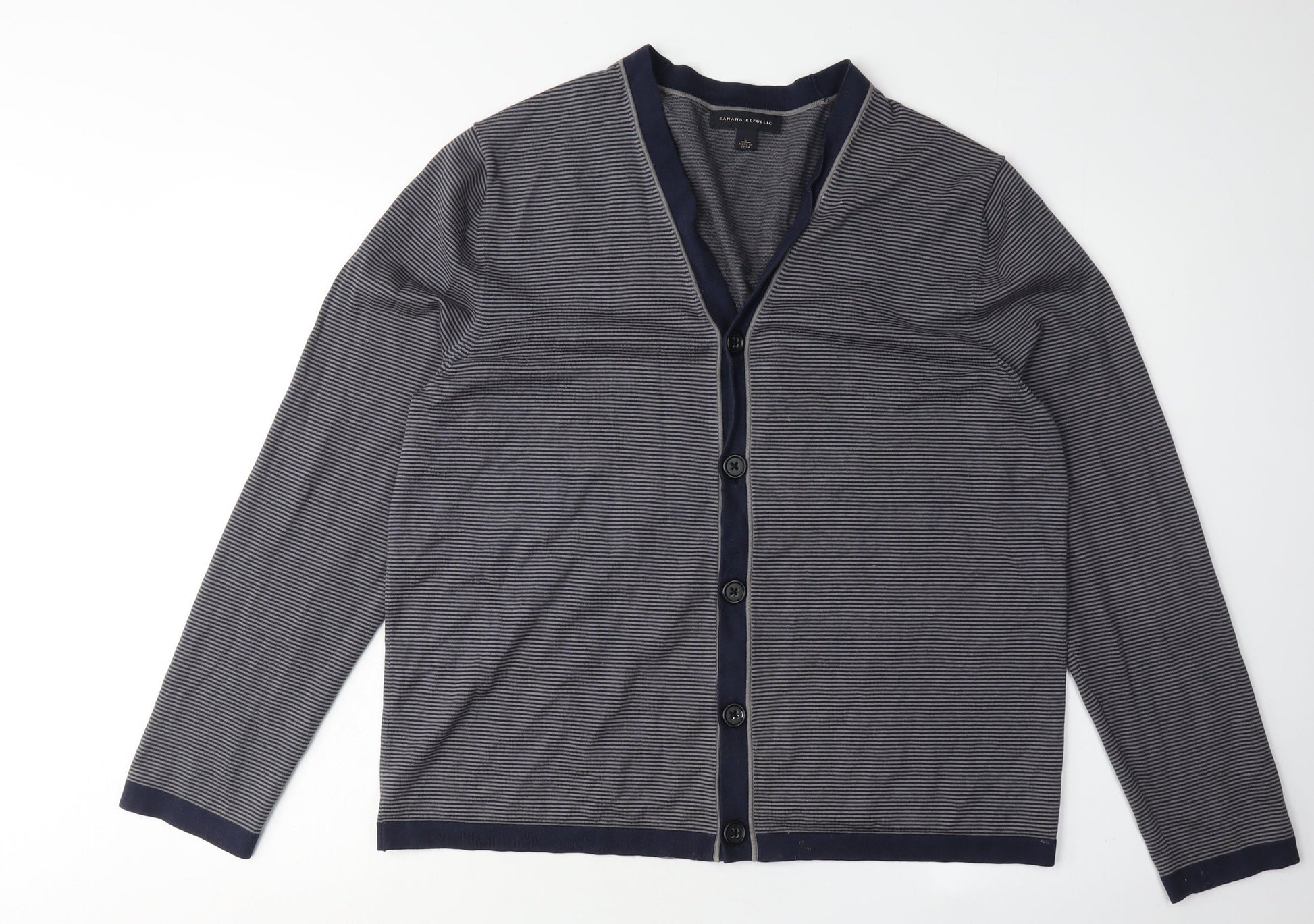 Banana Republic Men's Blue Striped Cardigan Size L