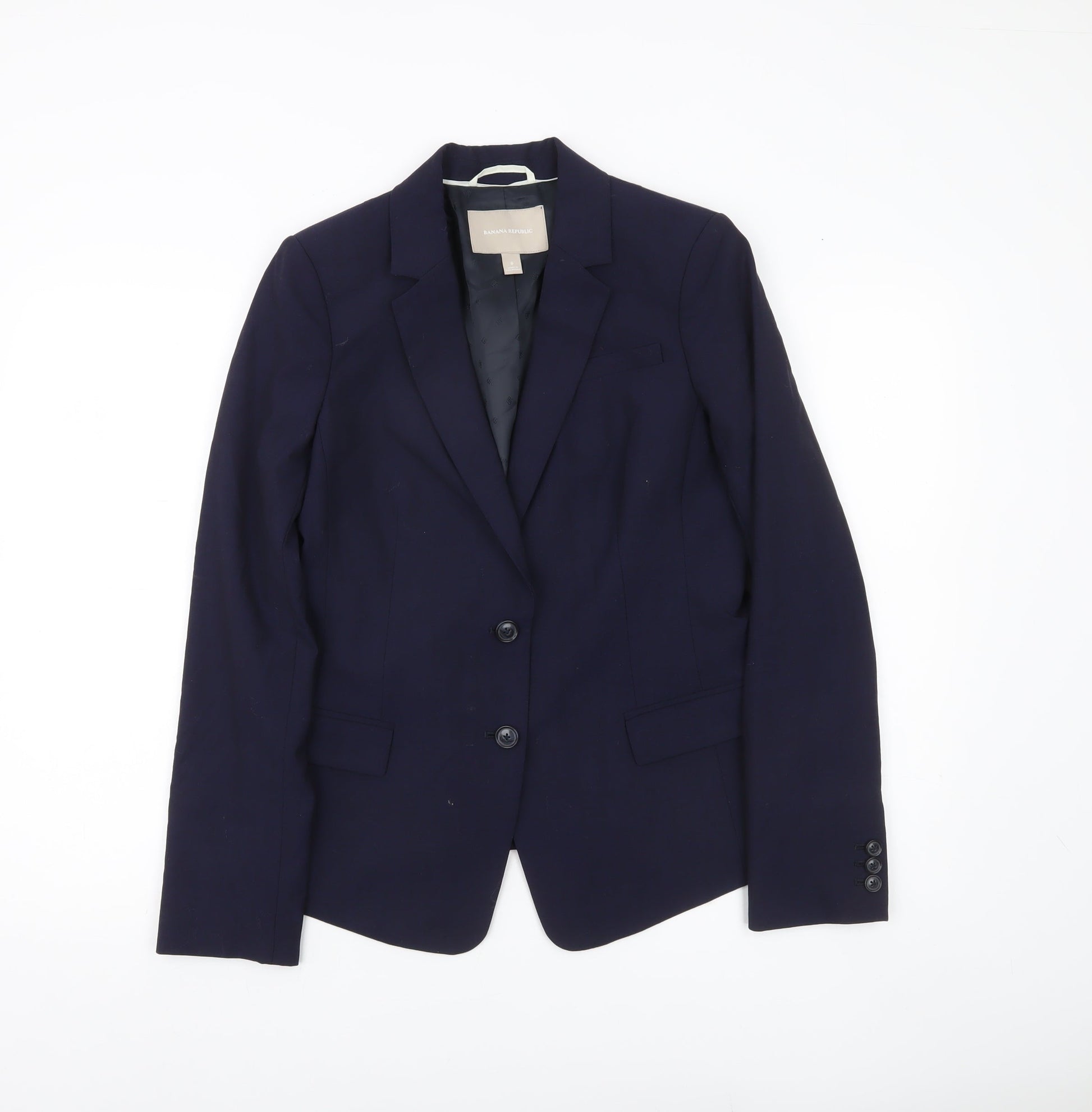 Banana Republic Women’s Blue Wool Blend Blazer Size 12 Two-Button Jacket