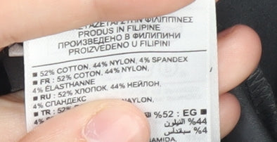 - Material Breakdown: 52% Cotton 44% Nylon 4% Elastane