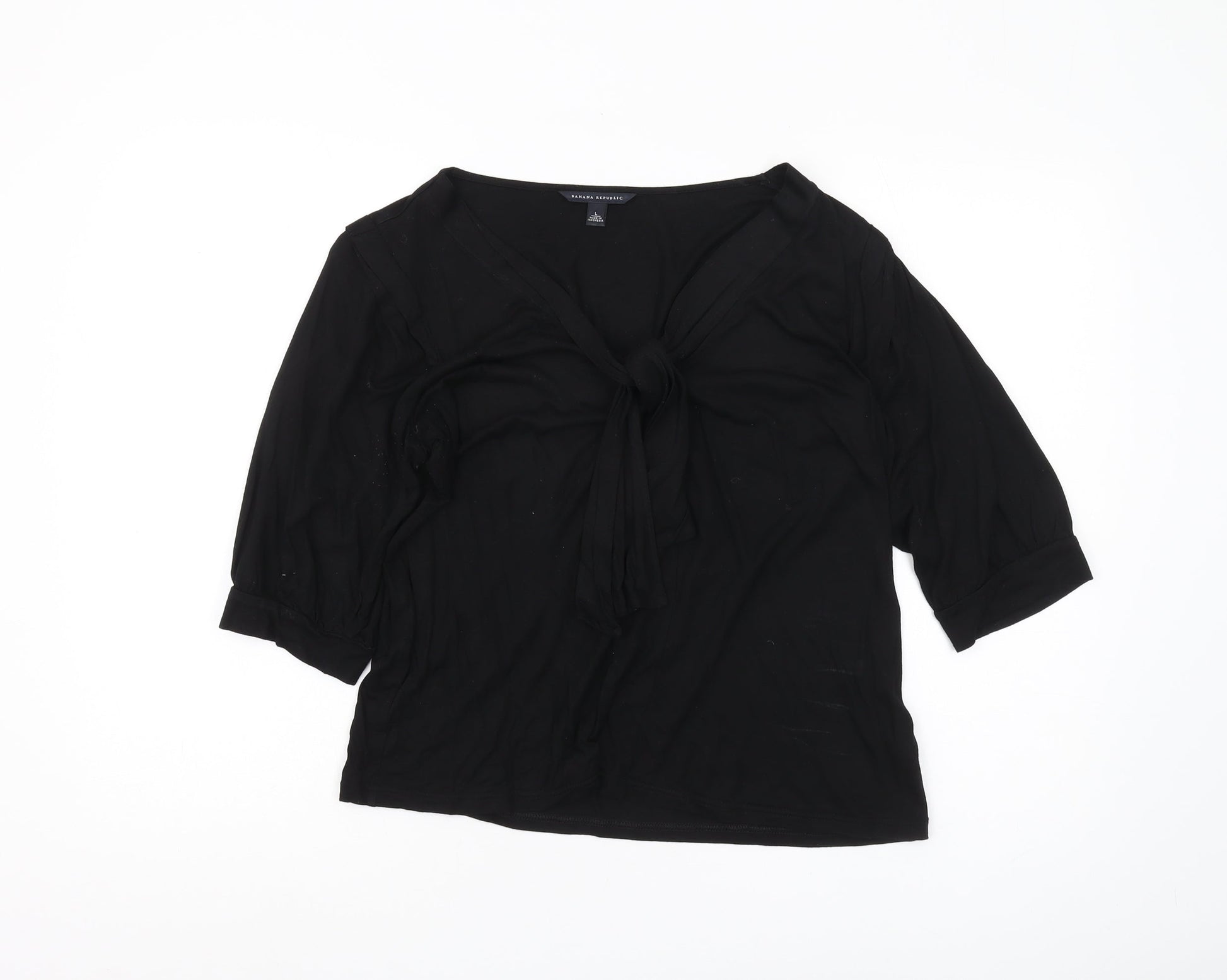 Banana Republic Women's Black V-Neck Blouse, L, Casual 3/4 Sleeve