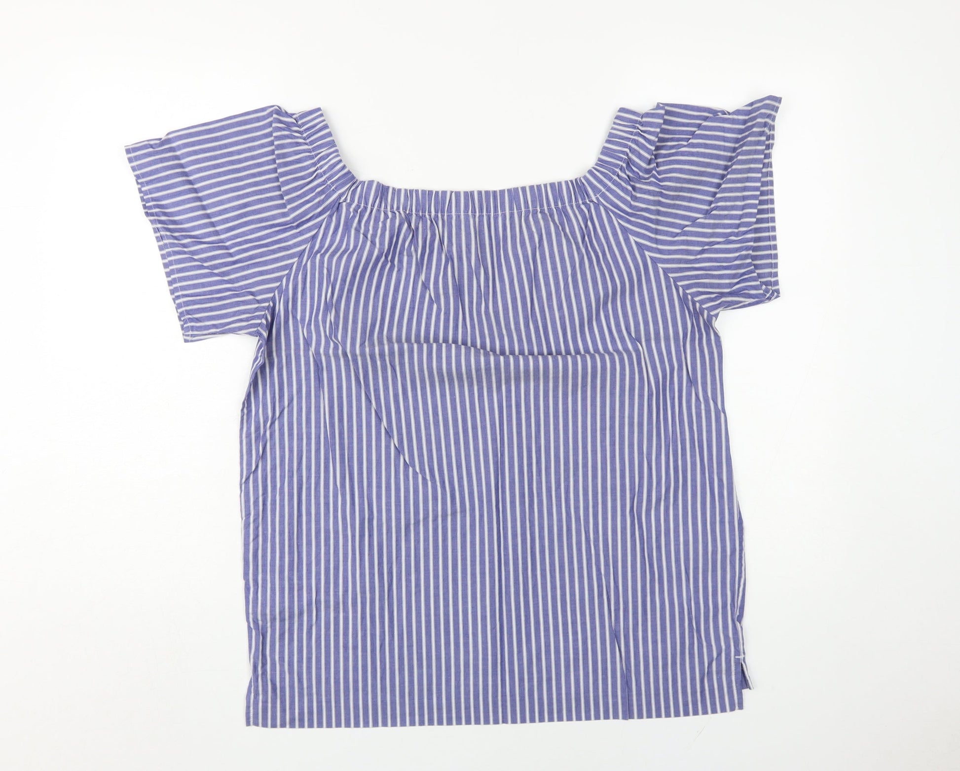 Banana Republic Women's Blue Striped Off-Shoulder Top XS