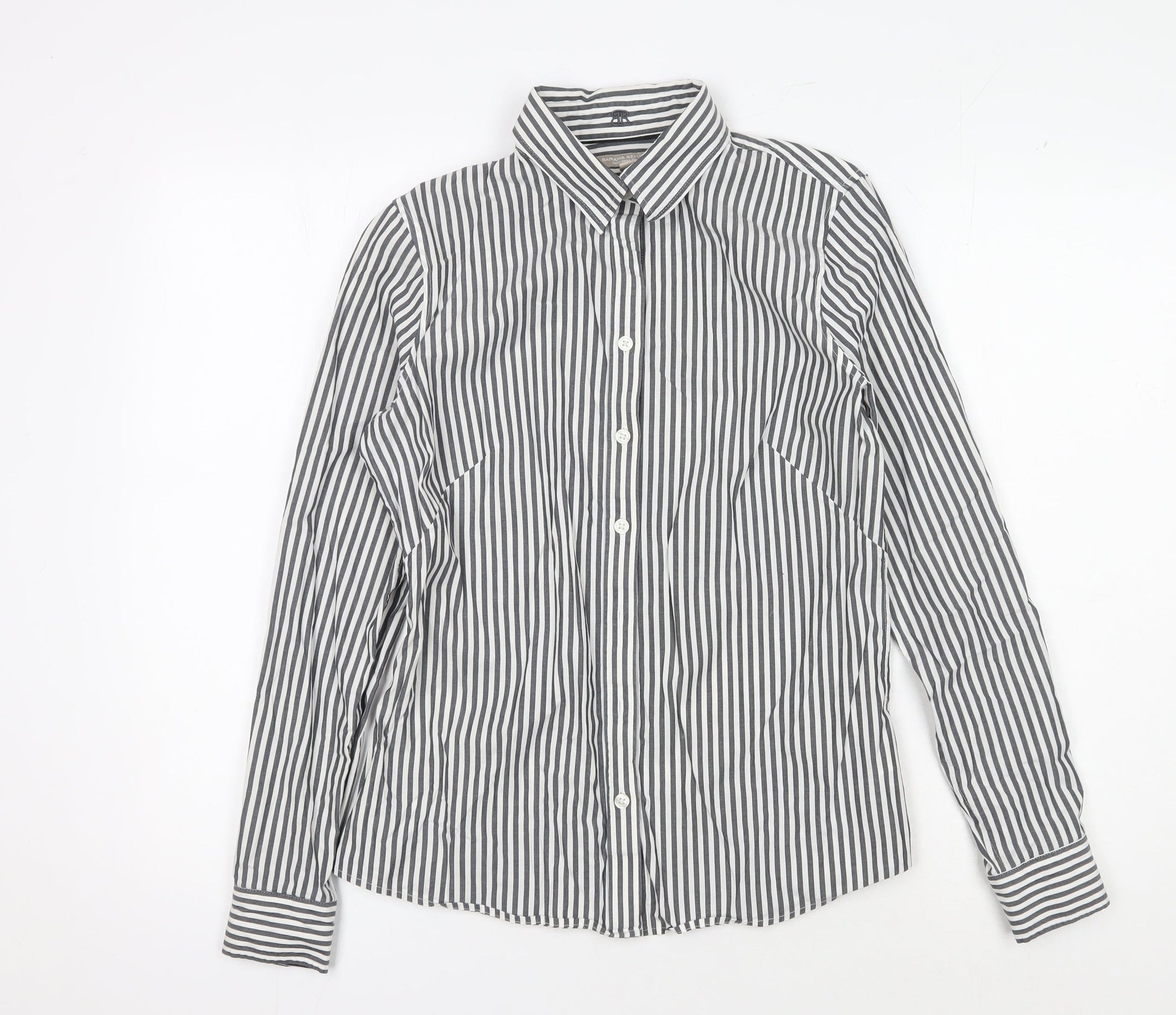 Banana Republic Women's Grey Striped Button-Up Shirt, Size 6
