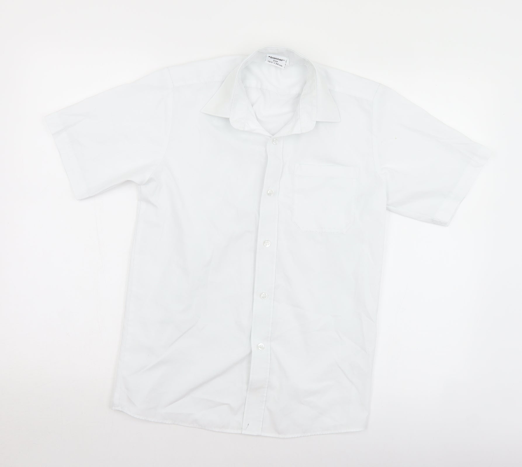 Banner Mens White Polyester Button-Up Size 13.5 Collared Button