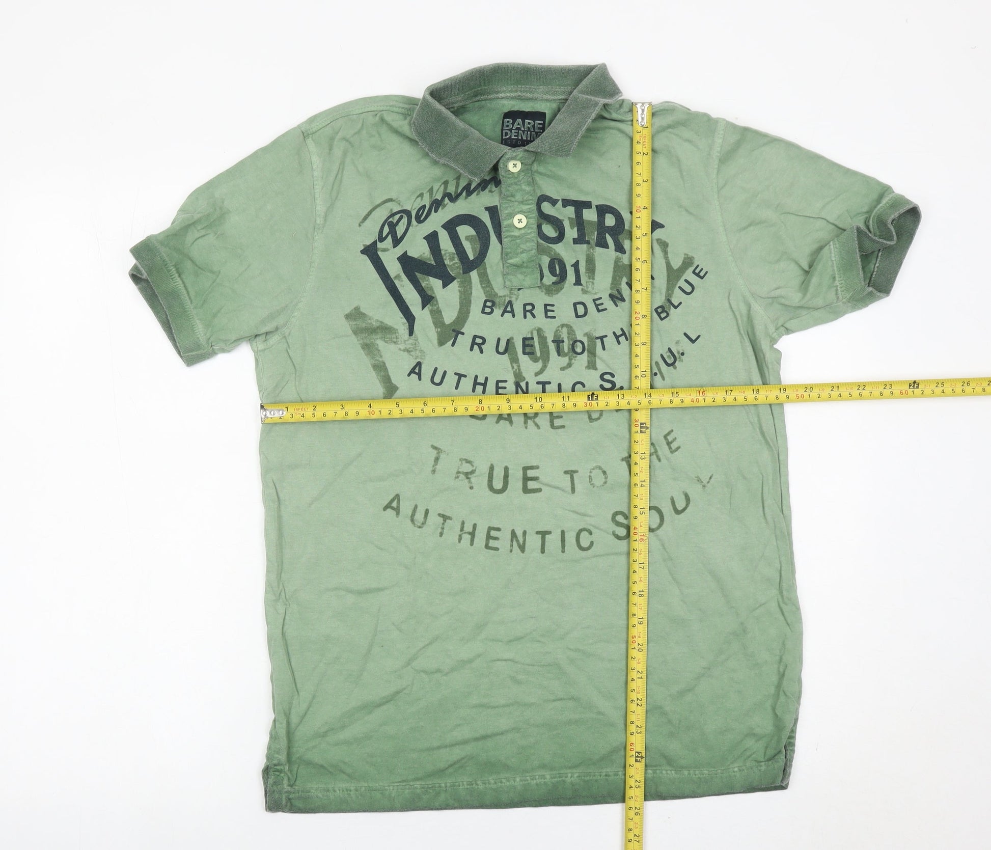 Bare Denim Men's Green Polo Shirt Size L Graphic Print Casual