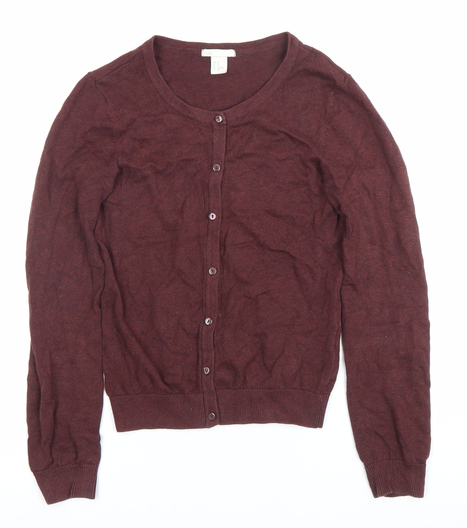 BASIC Womens Brown XS Button Up Cotton Long Sleeve Cardigan