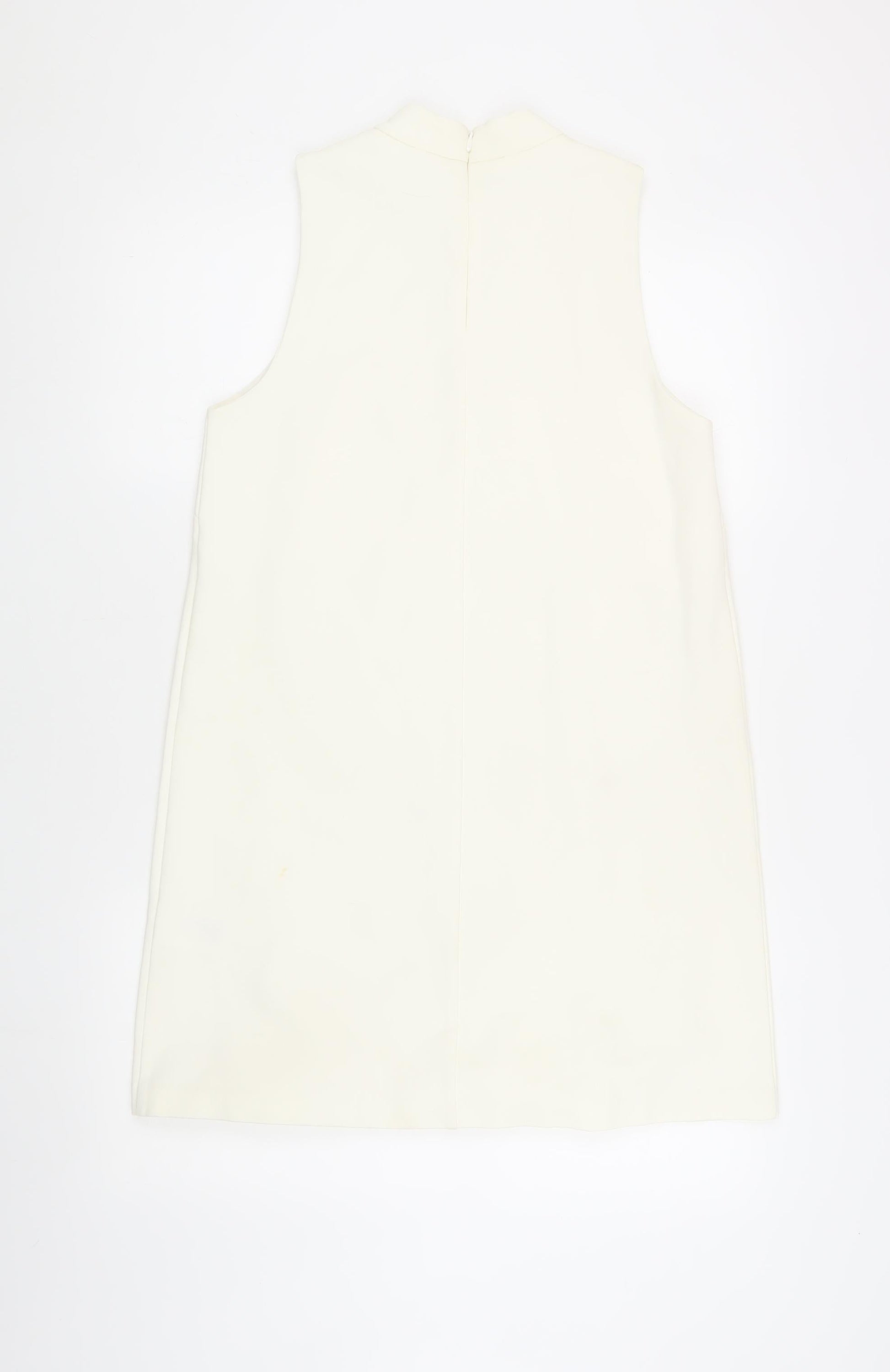 Basic Women's Ivory Shift Dress, Size 10, High Neck