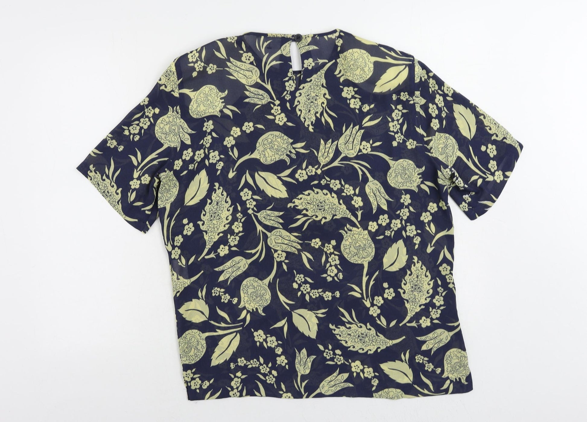 Basler Womens Blue Floral Polyester Basic Blouse Size 12 Round Neck - Sheer