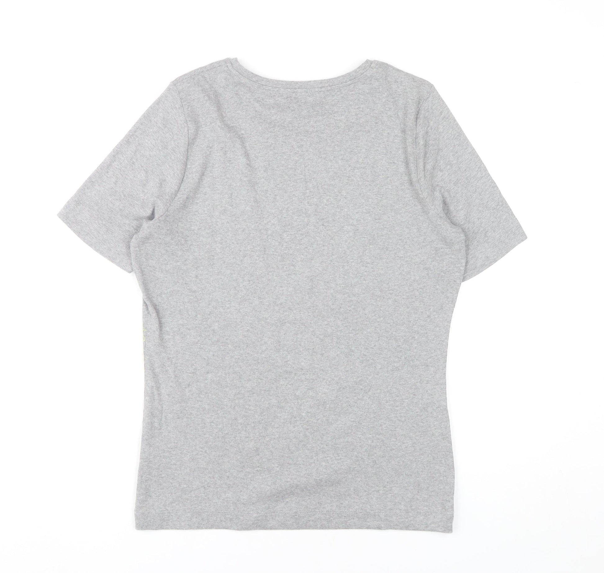 Basler Womens Grey T-Shirt Size 16 Floral Butterfly Studded Top