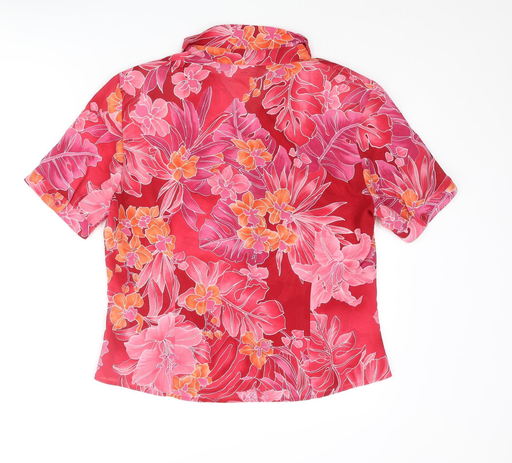 Basler Womens Pink Floral Polyester Basic Blouse Size 12 Collared