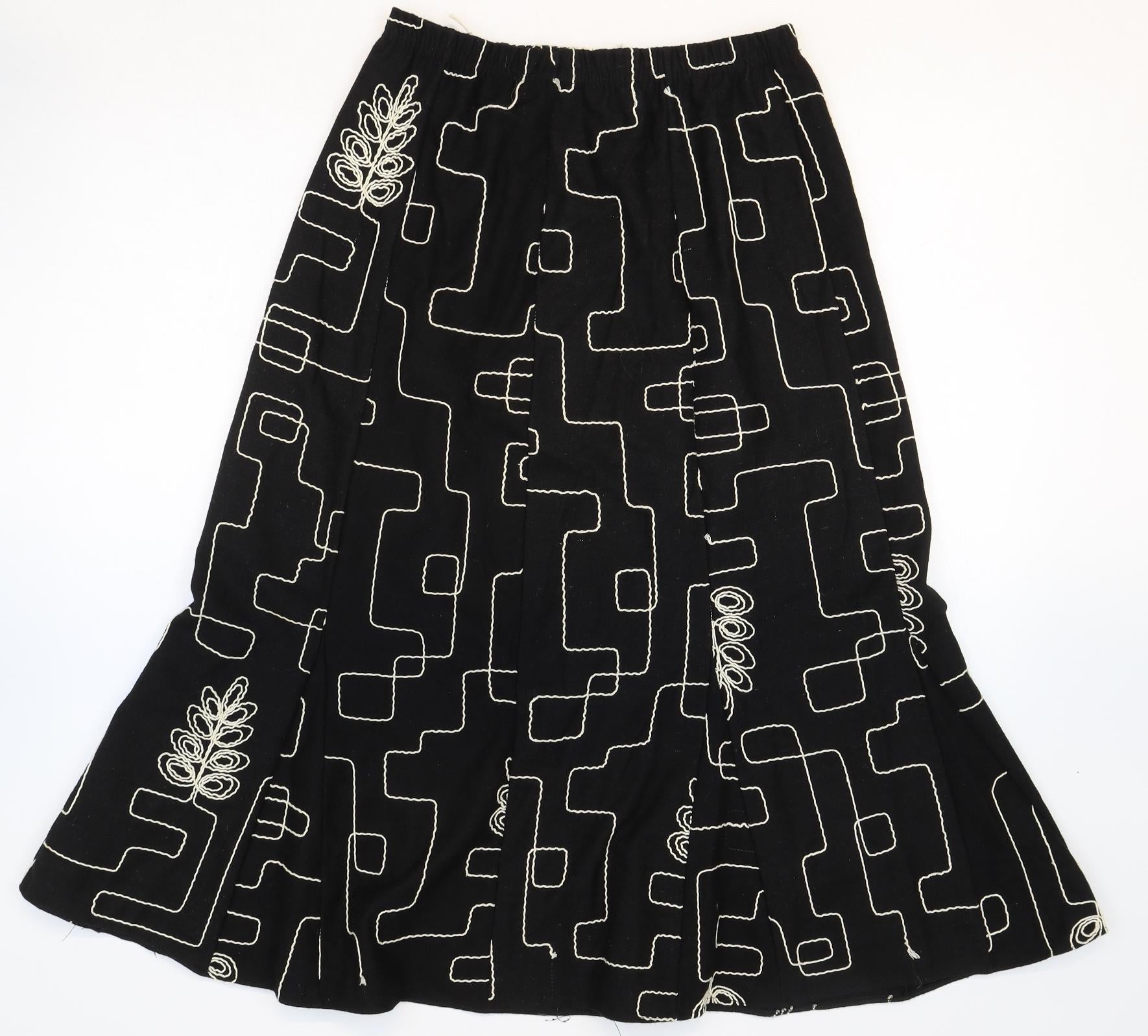 BASSINI Womens Black Geometric Viscose Trumpet Skirt Size M