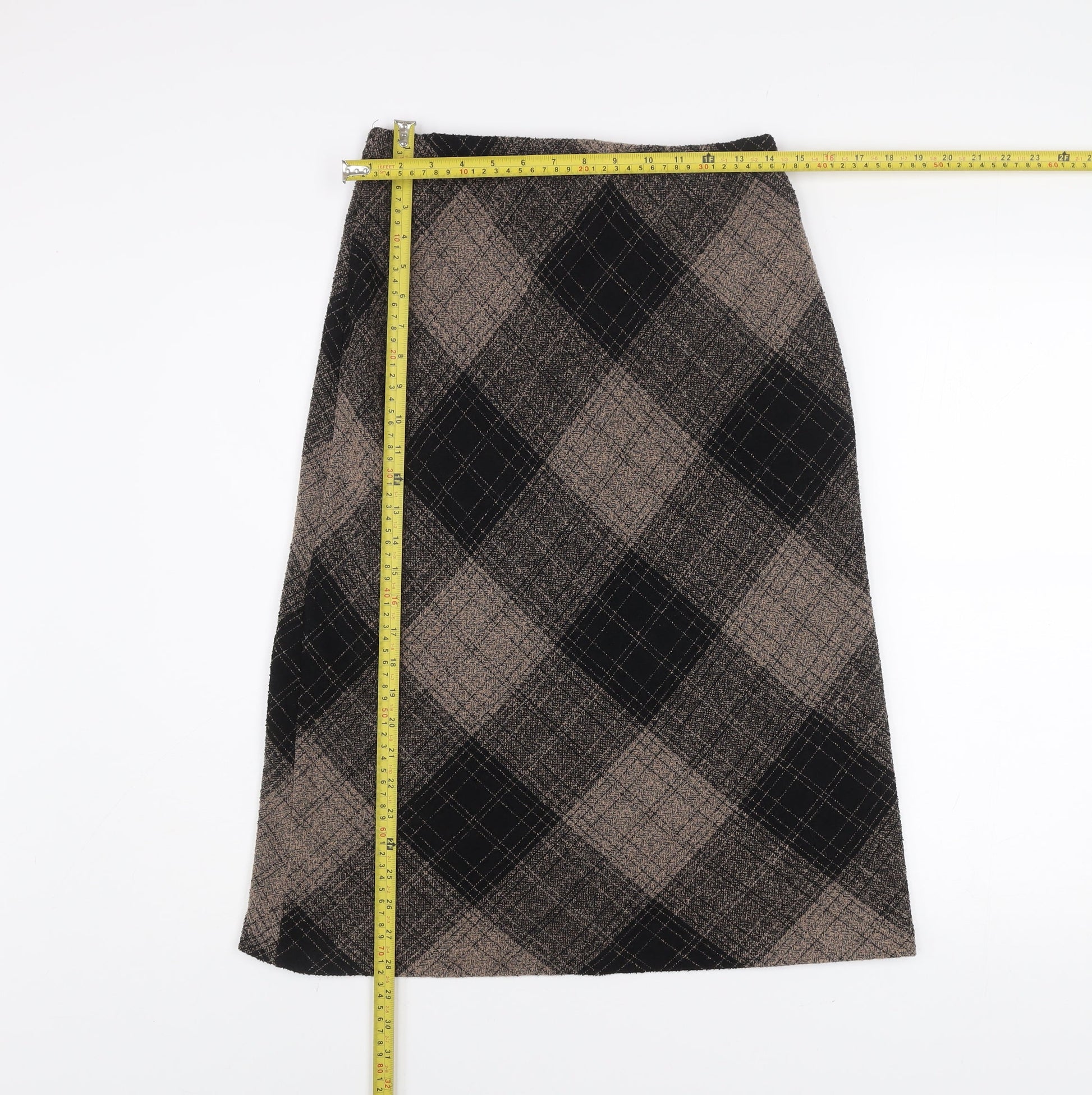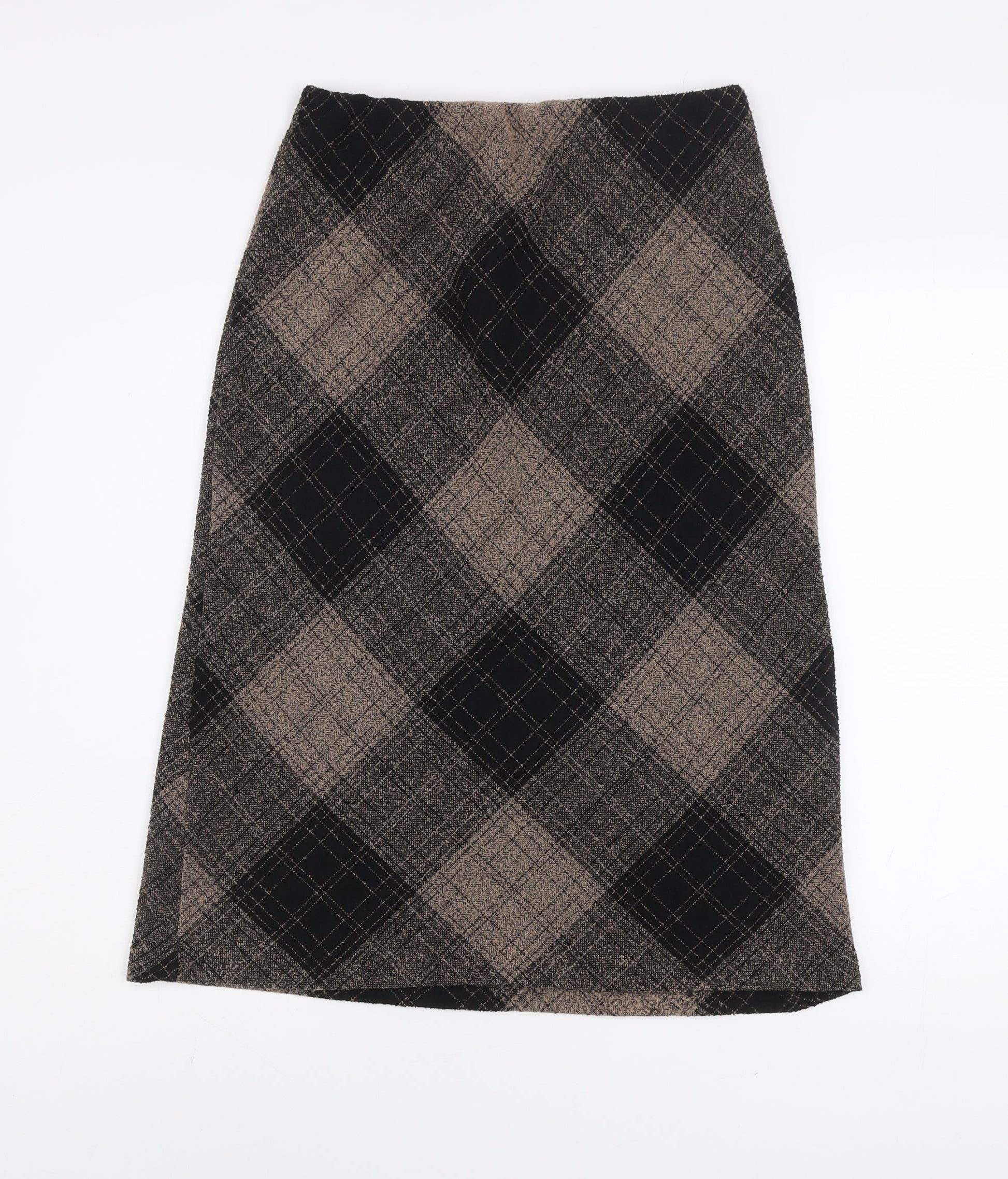 Bassini Womens Brown Check Midi Stretch Pencil Skirt Size 12