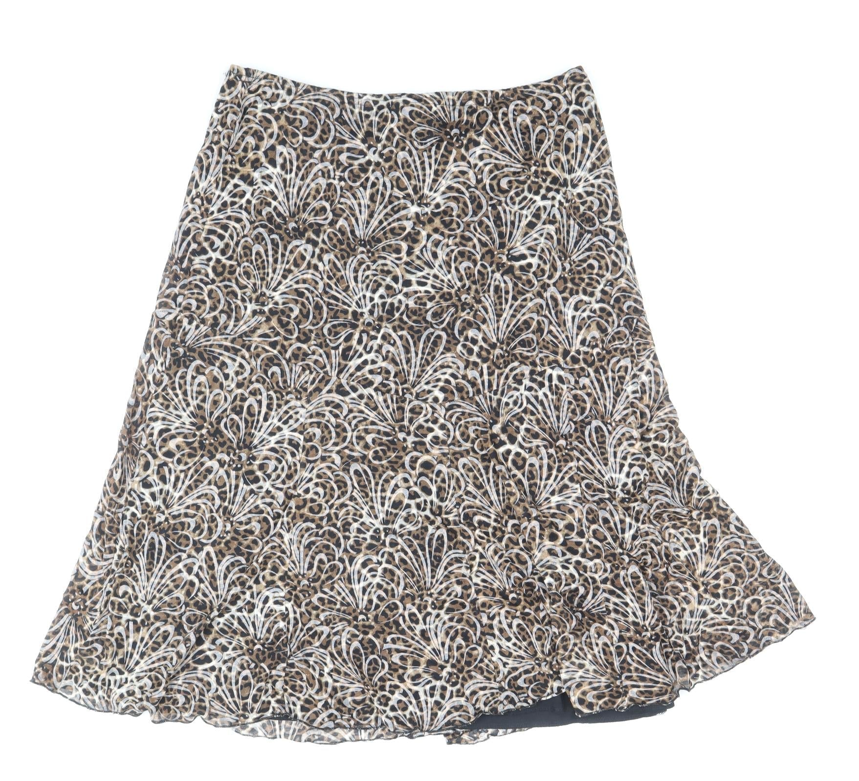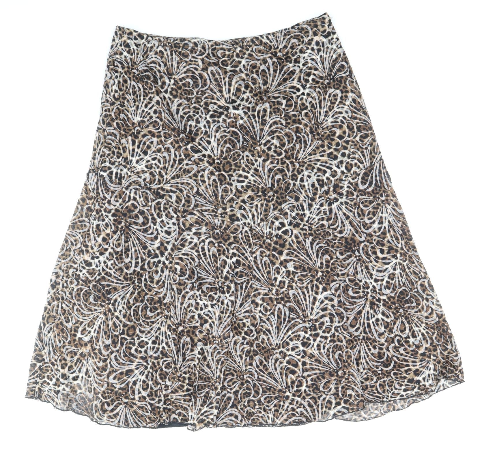 BASSINI Womens Brown Geometric Cotton Flare Skirt Size 12