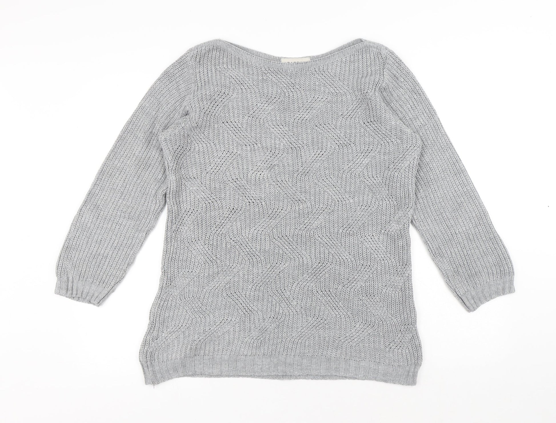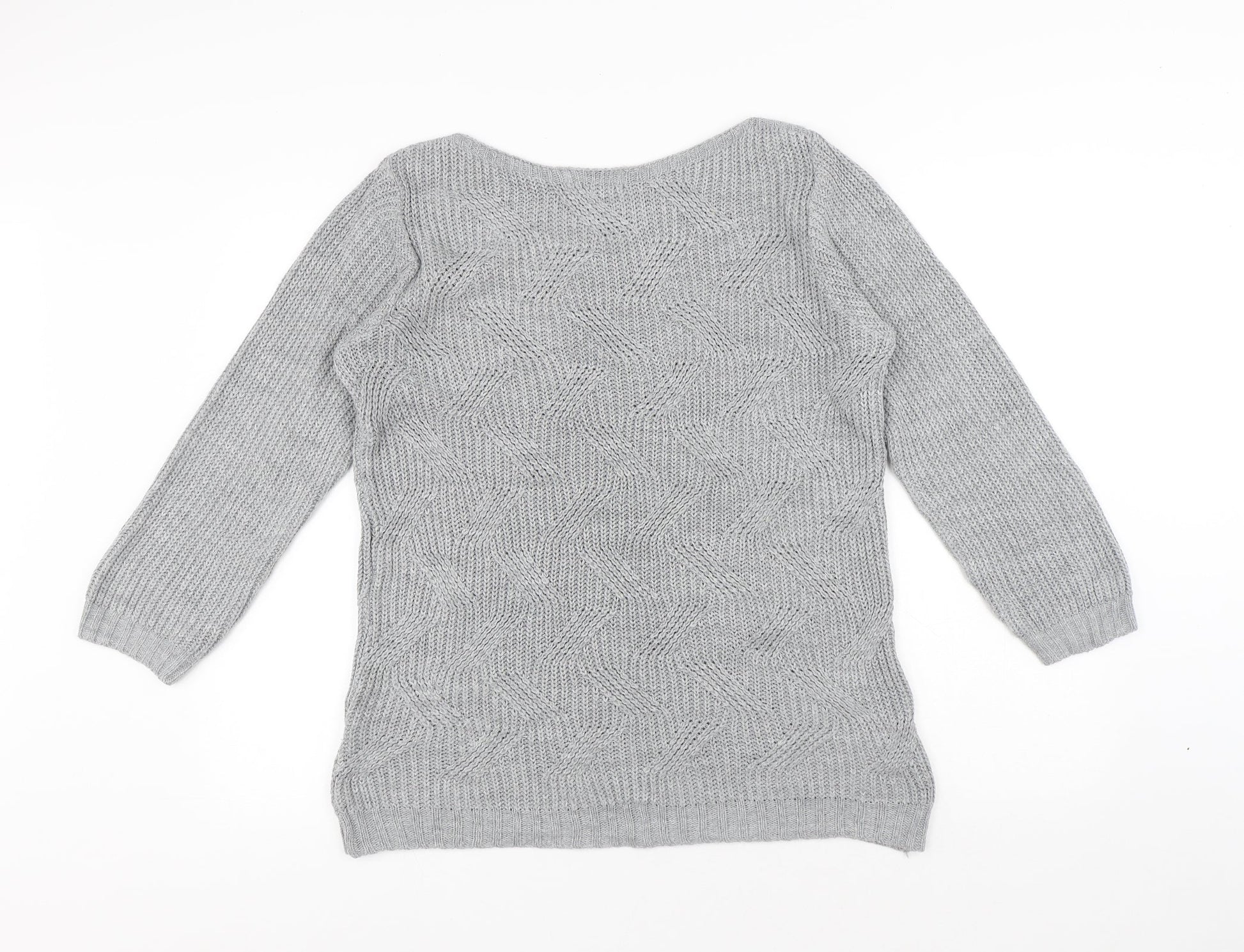 BASSINI Womens Grey Round Neck Acrylic Pullover Jumper Size L