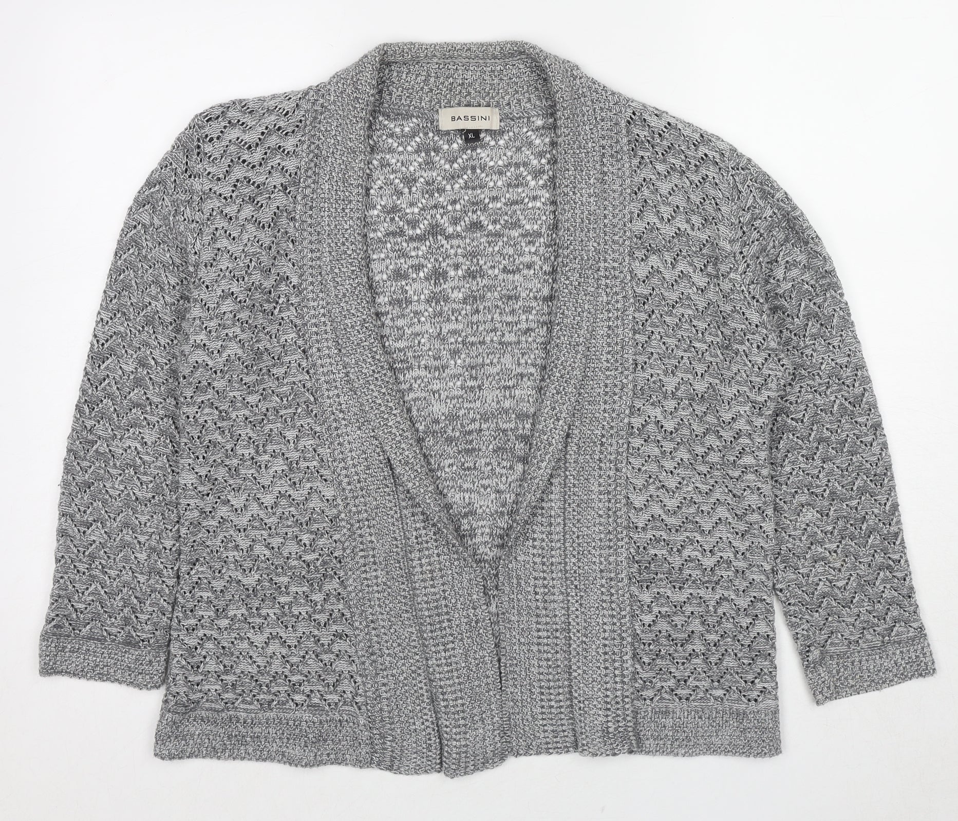 BASSINI Womens Grey V-Neck Polyester Cardigan Jumper Size XL
