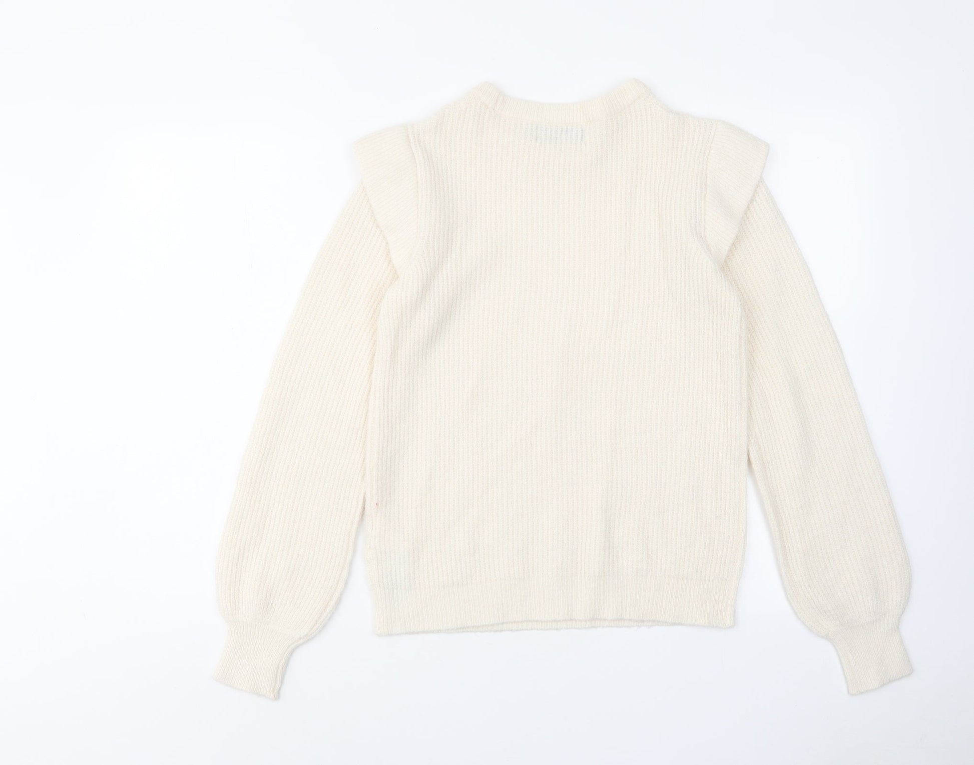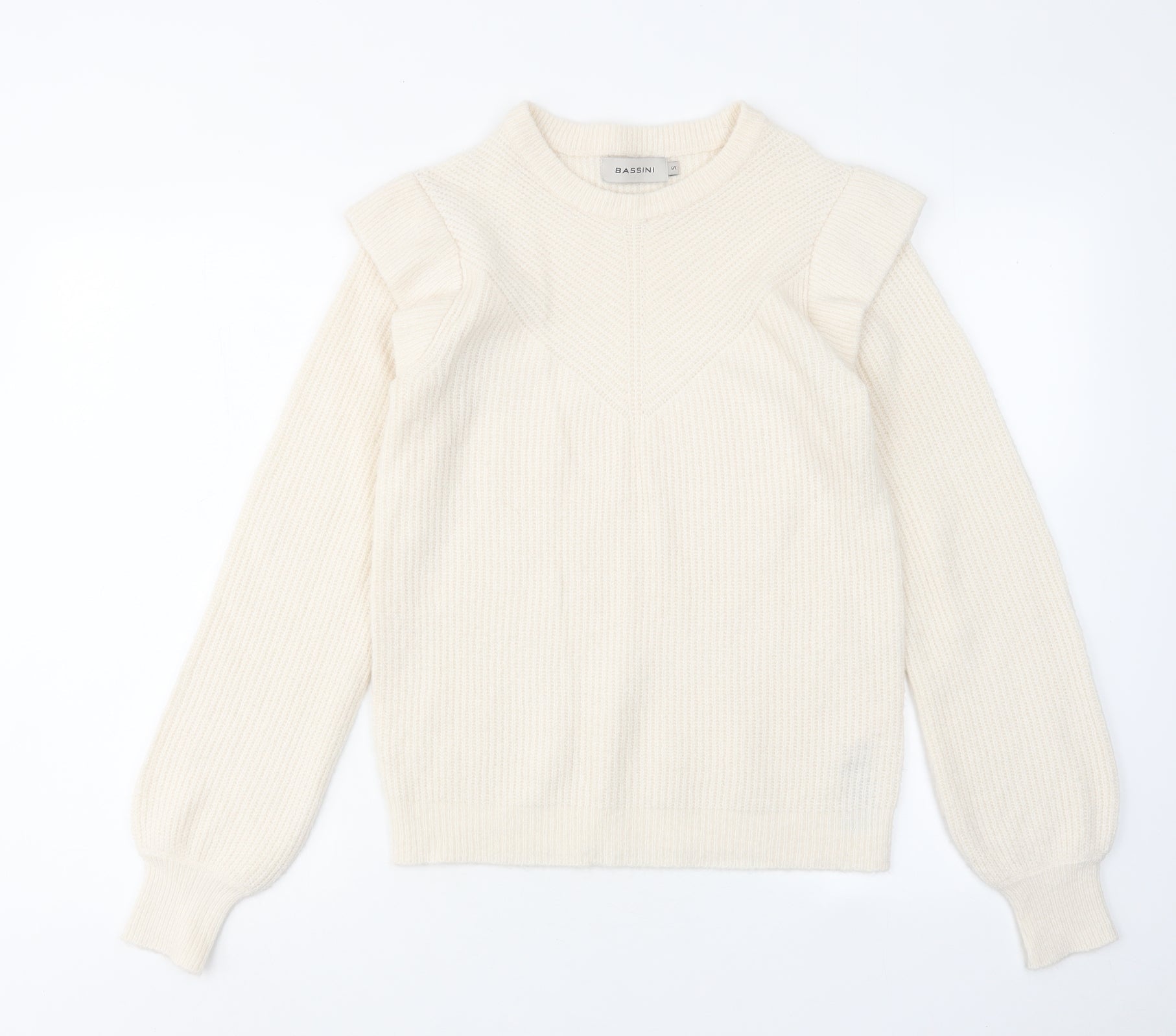 BASSINI Womens Ivory Round Neck Acrylic Pullover Jumper Size S