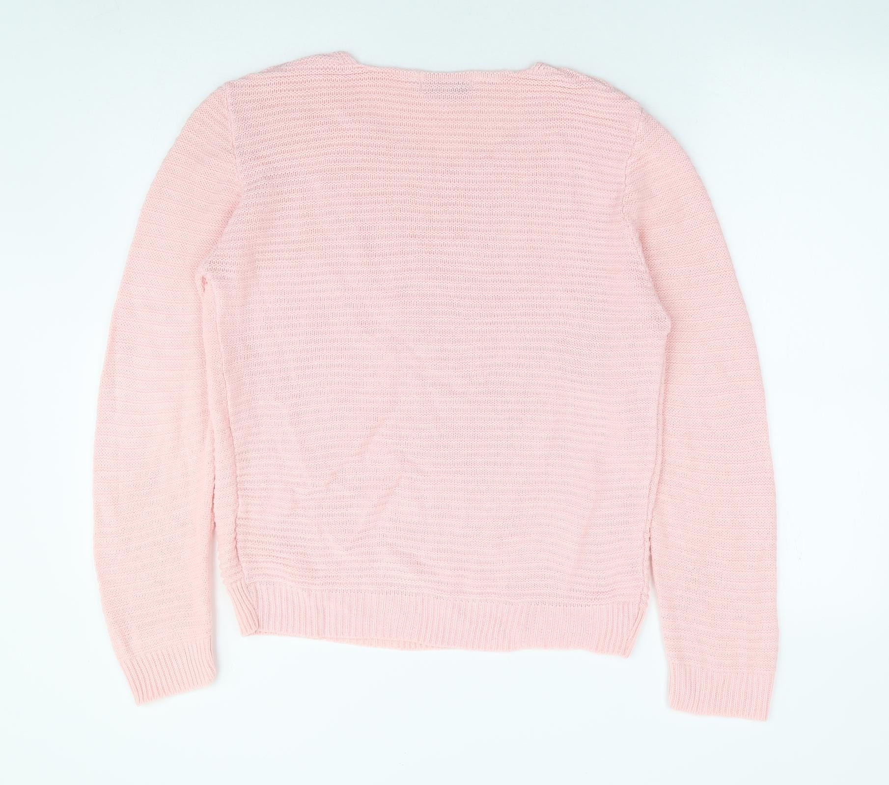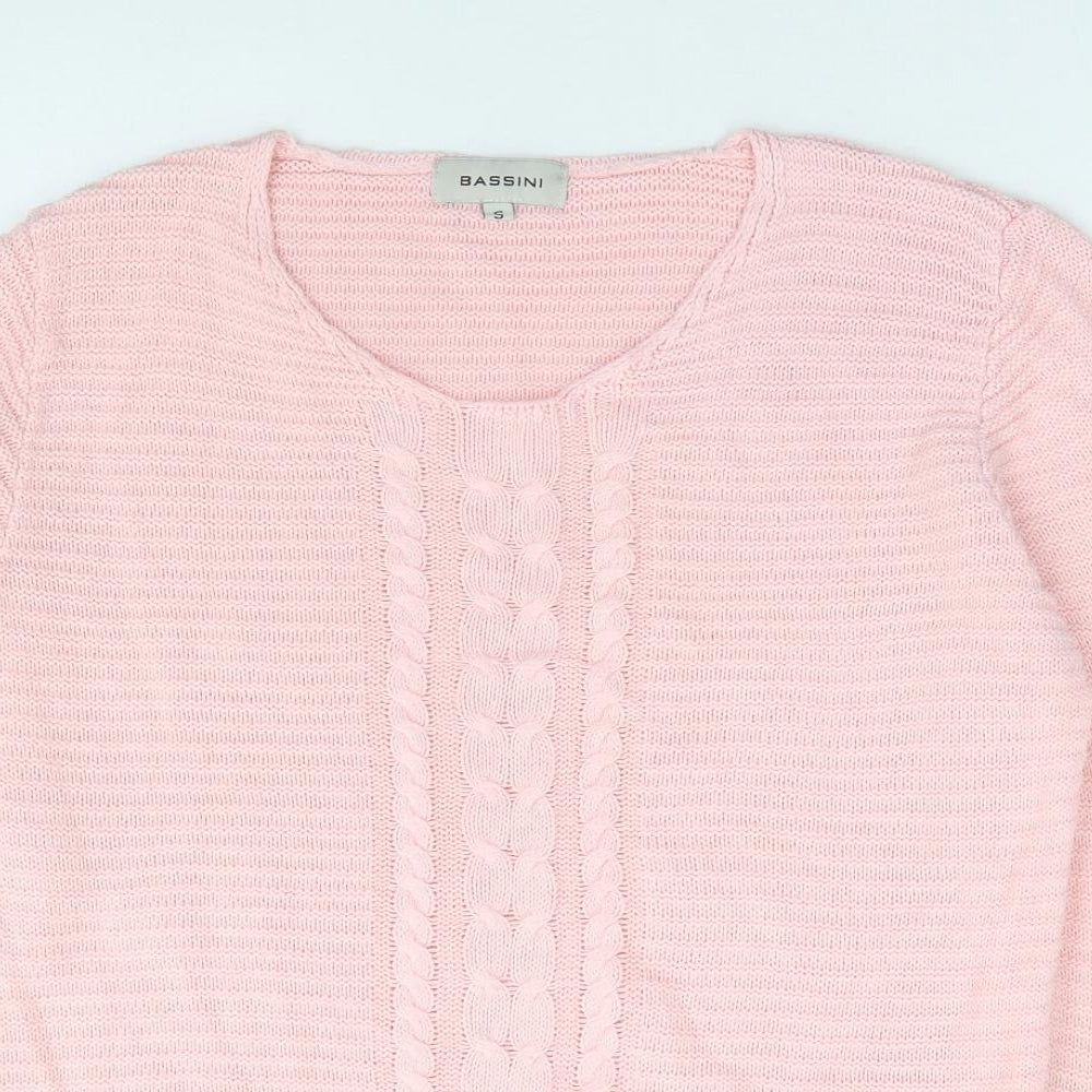 BASSINI Womens Pink Scoop Neck Acrylic Pullover Jumper Size S