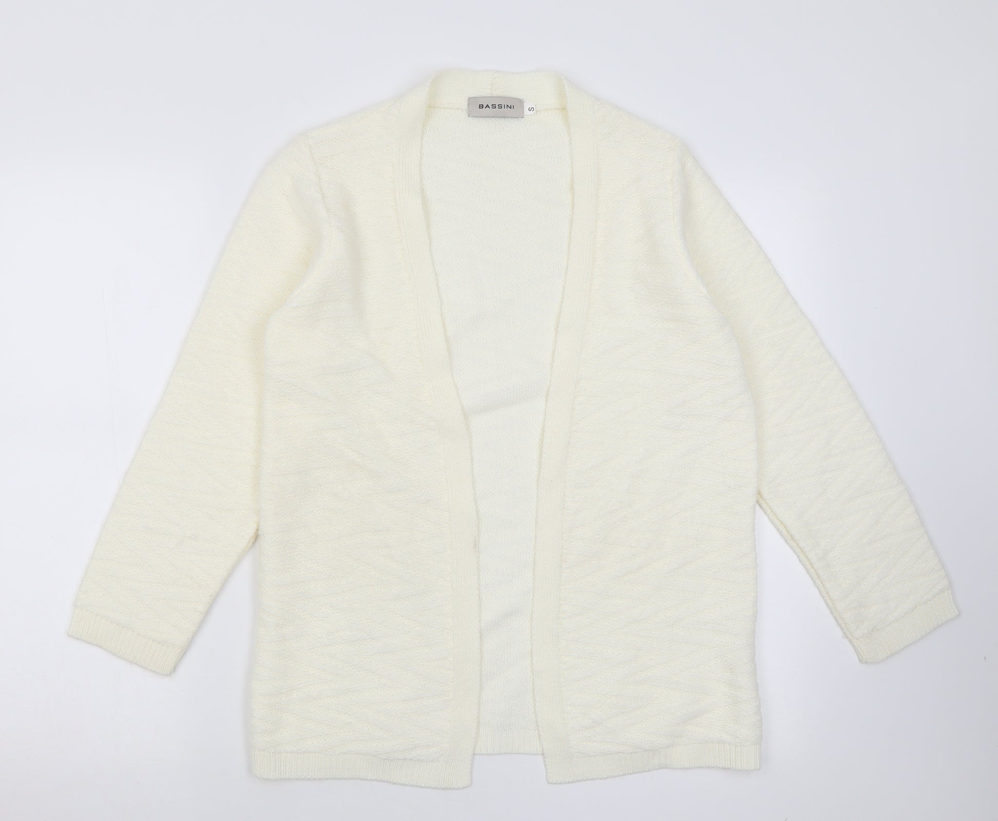 BASSINI Womens White V-Neck Acrylic Cardigan Jumper Size S