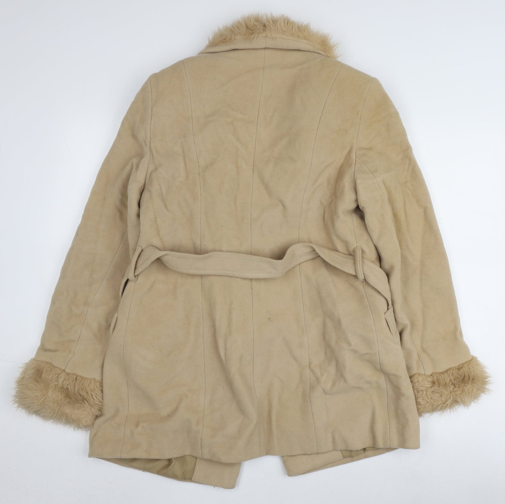 Bay Women's Beige Fur Trim Wool Coat Size 12